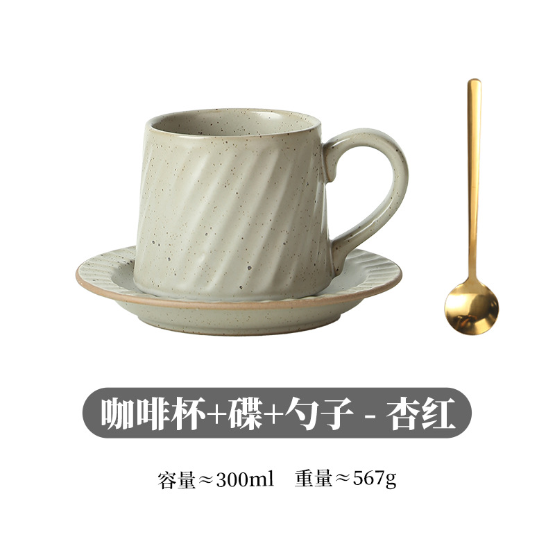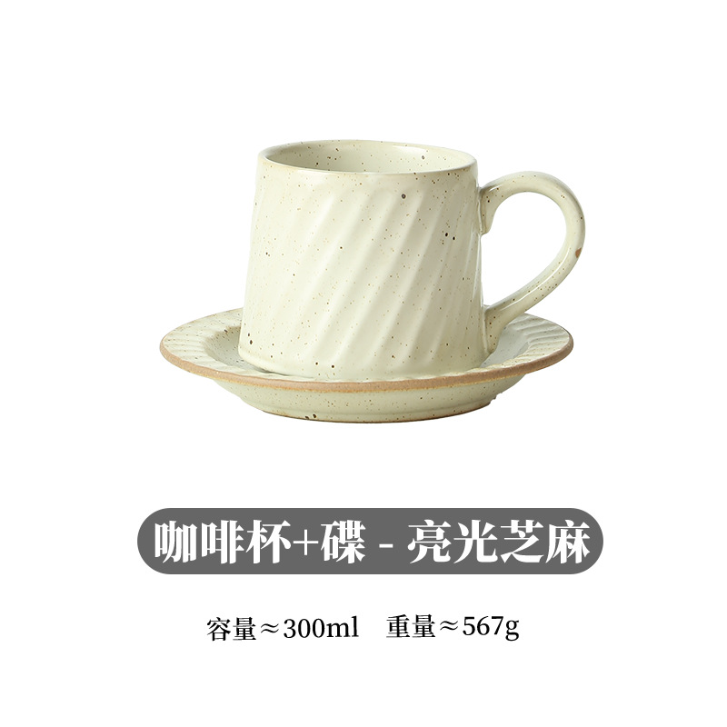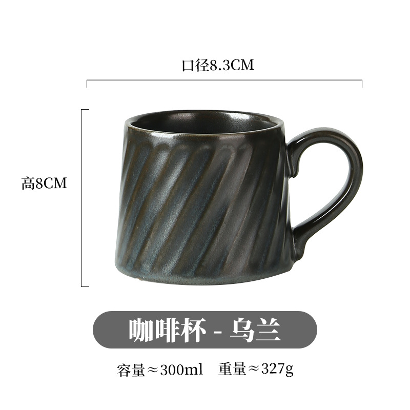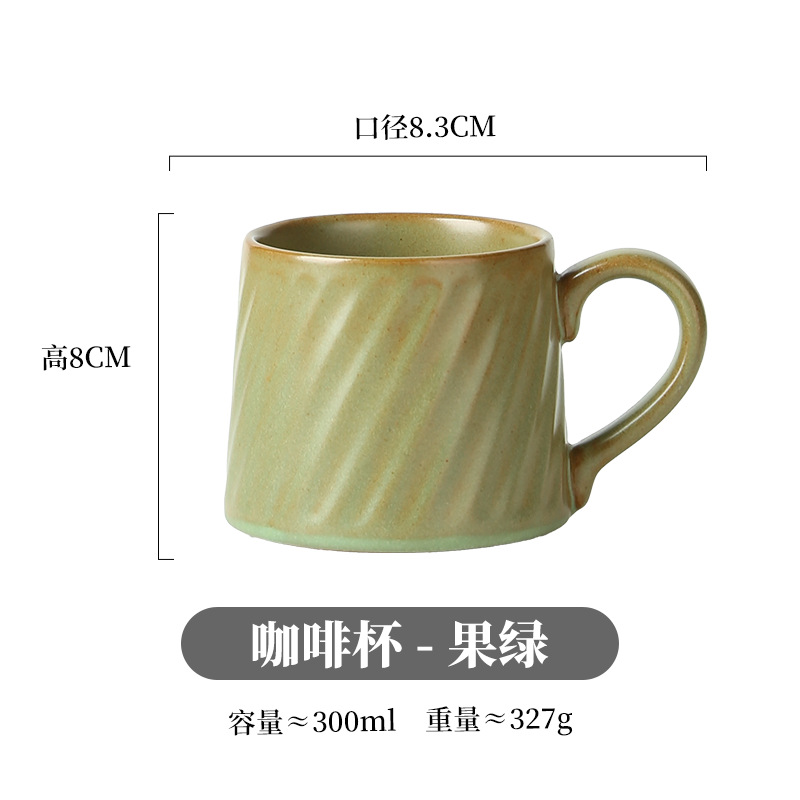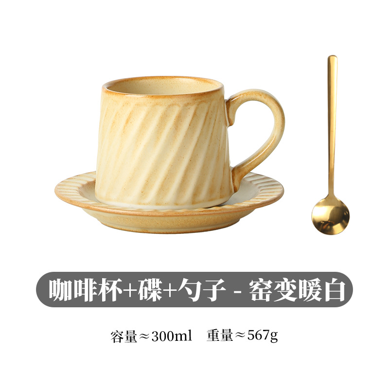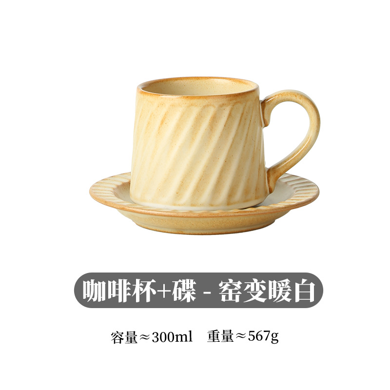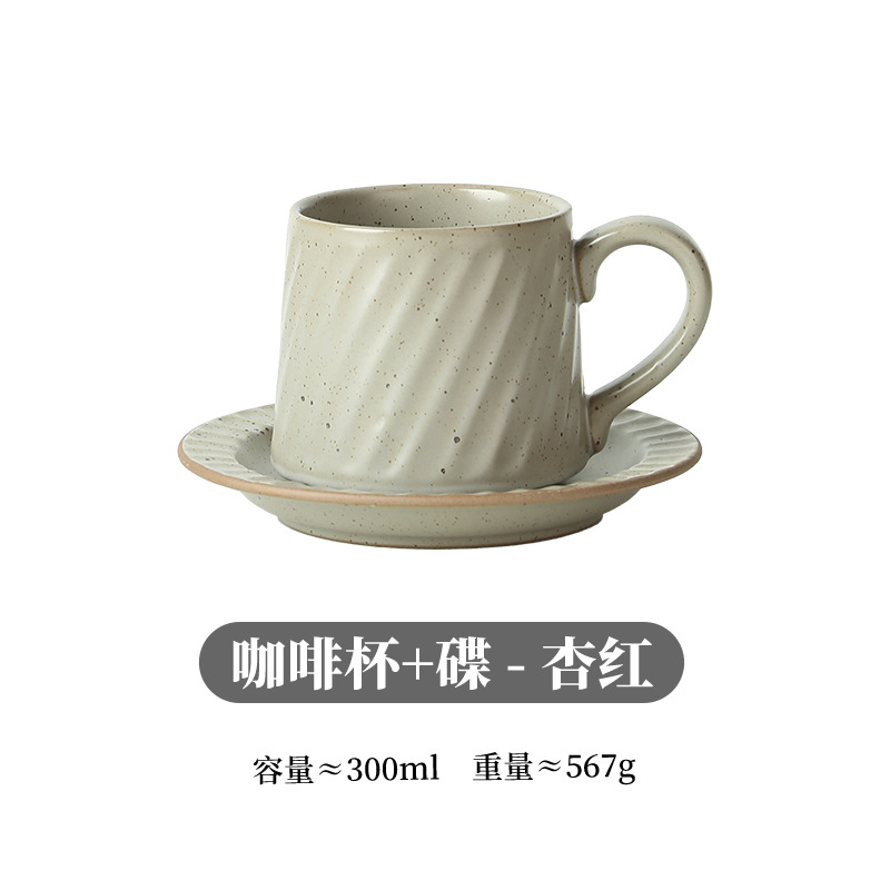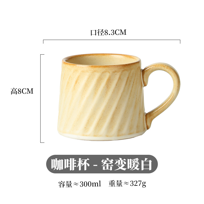 复古陶瓷条纹杯 手绘粗陶马克杯下午茶牛奶咖啡杯 意式怀旧风杯碟