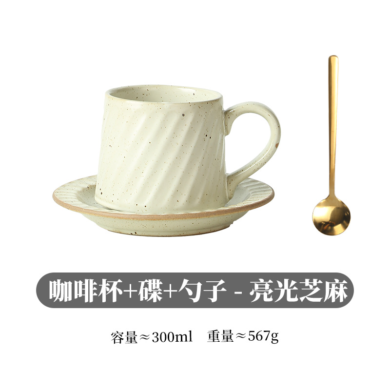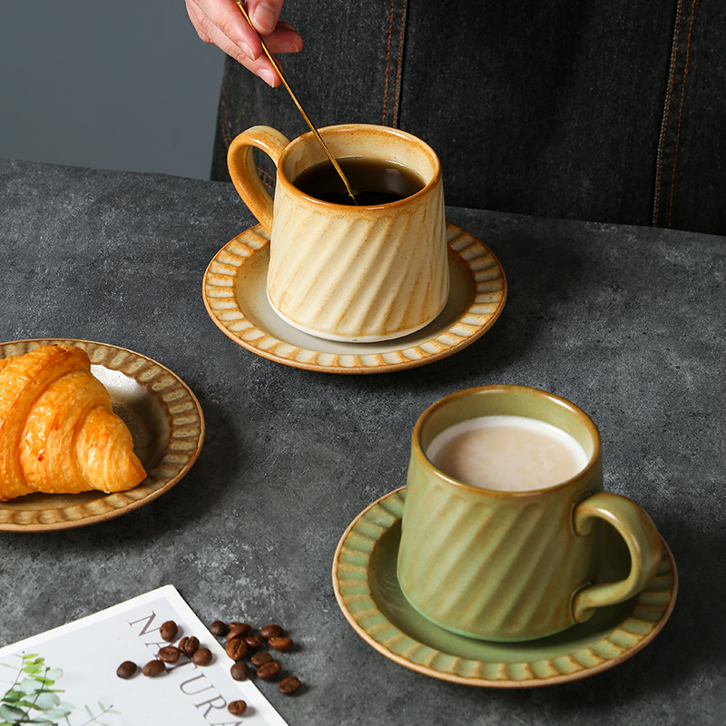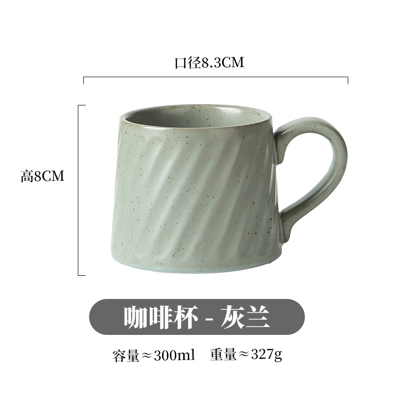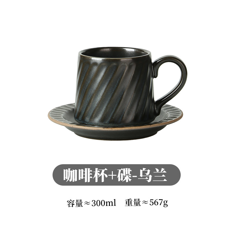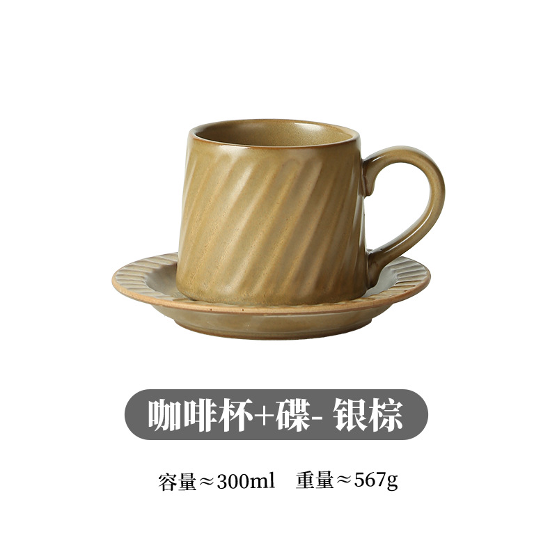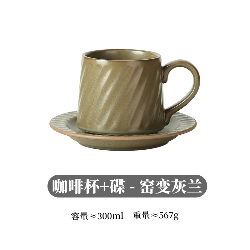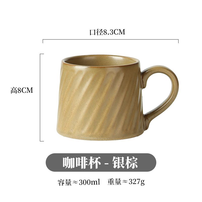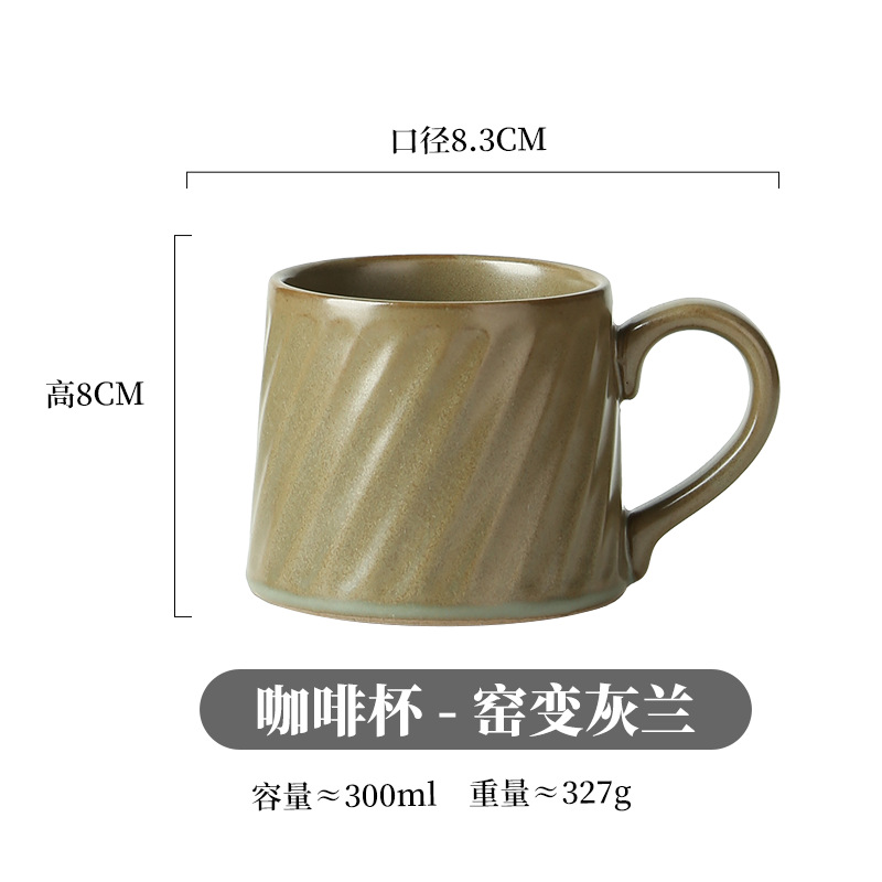 复古陶瓷条纹杯 手绘粗陶马克杯下午茶牛奶咖啡杯 意式怀旧风杯碟