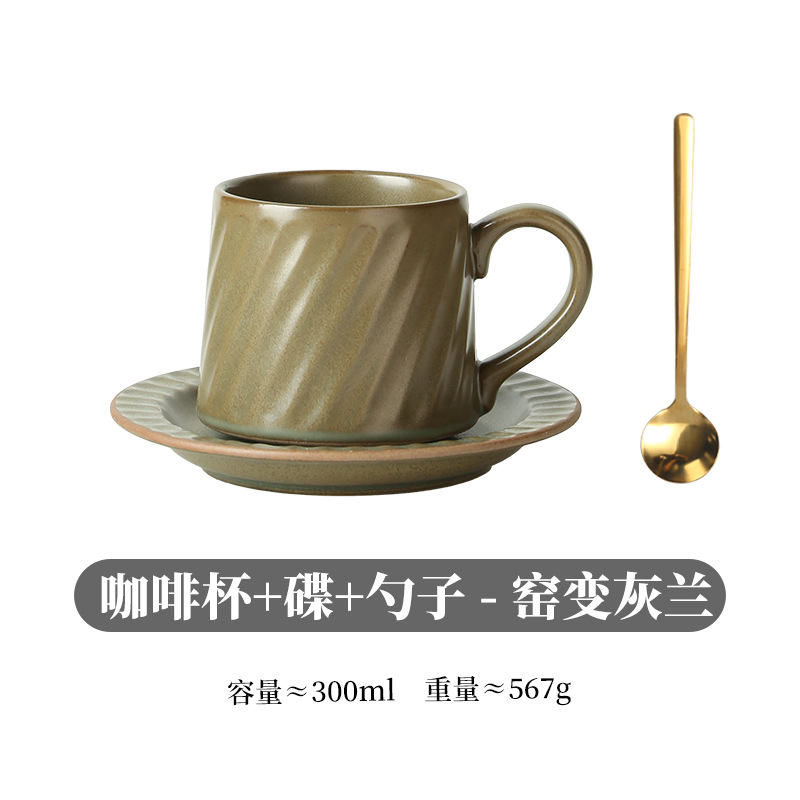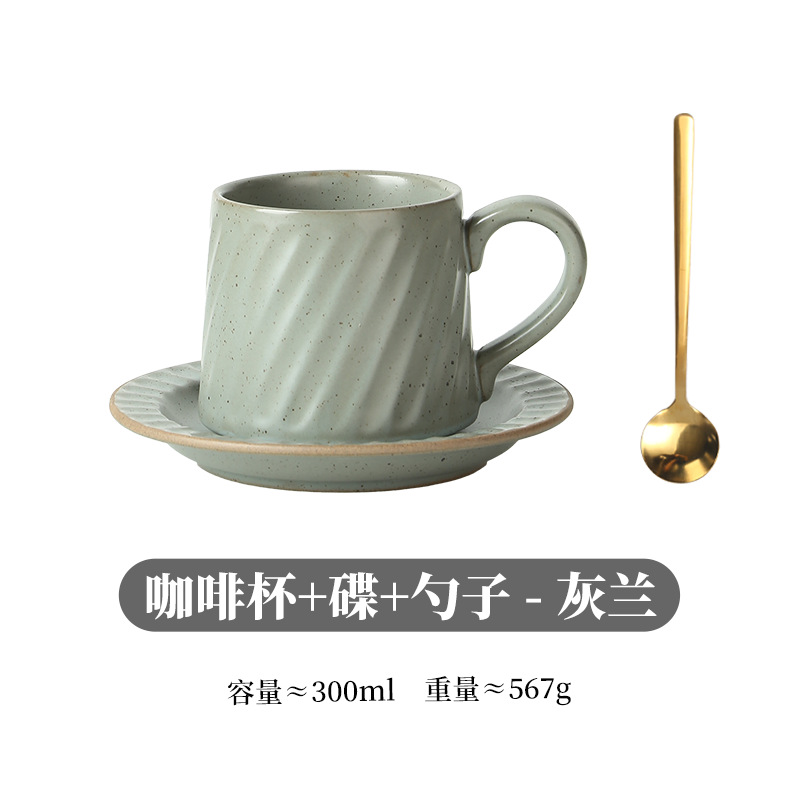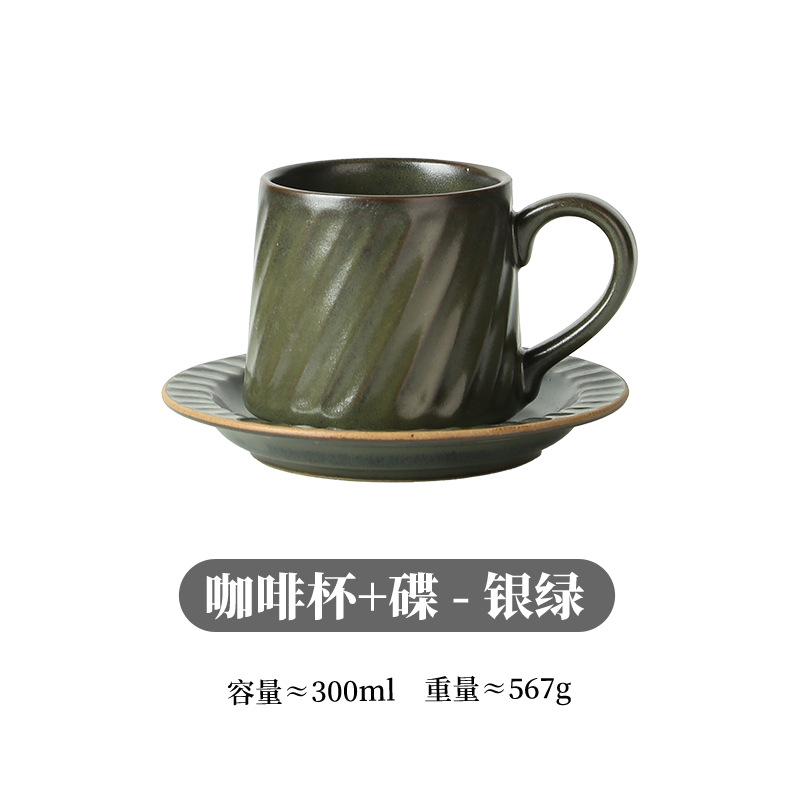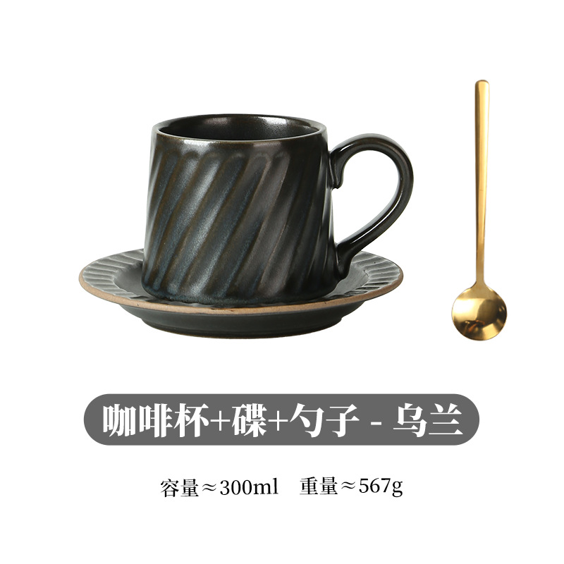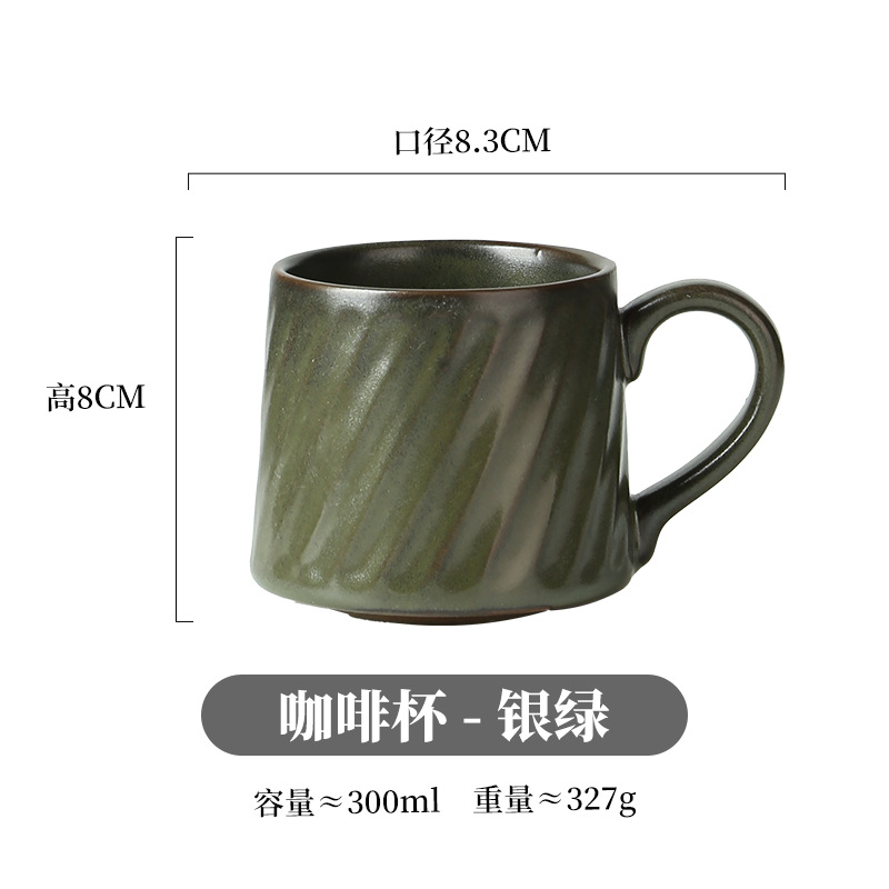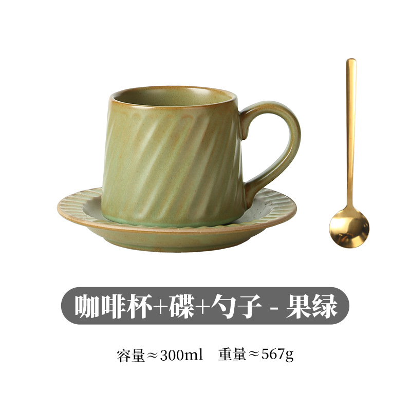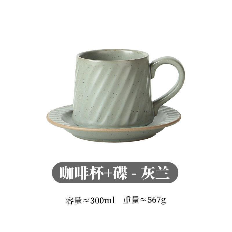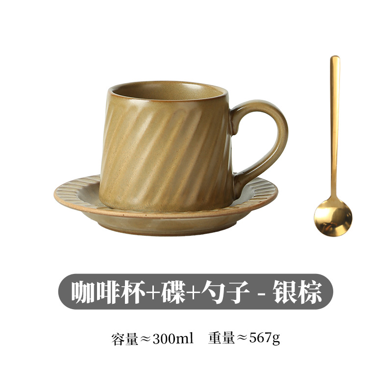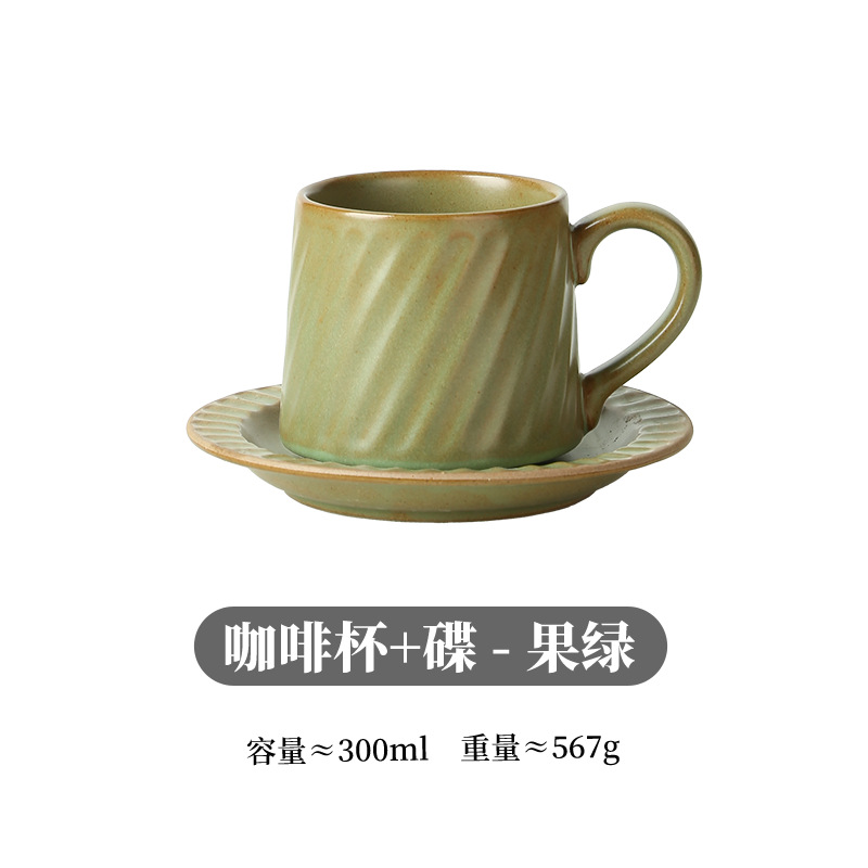 复古陶瓷条纹杯 手绘粗陶马克杯下午茶牛奶咖啡杯 意式怀旧风杯碟
