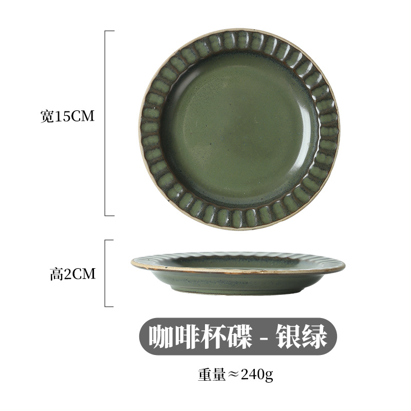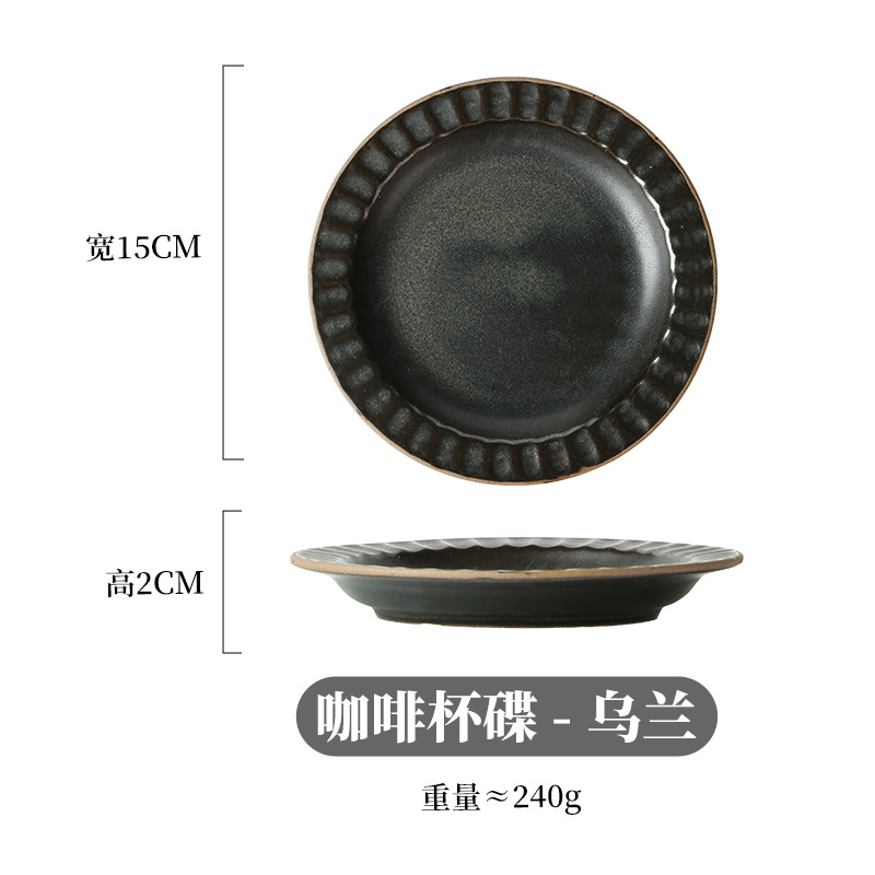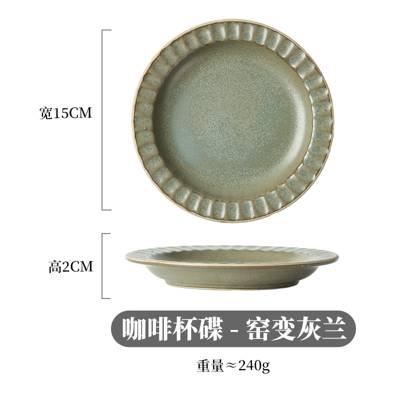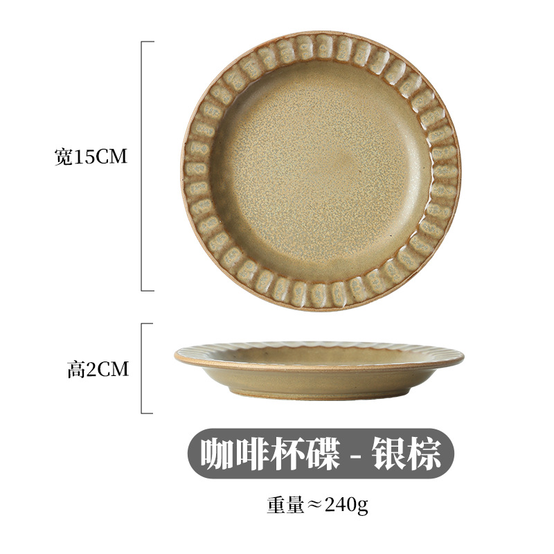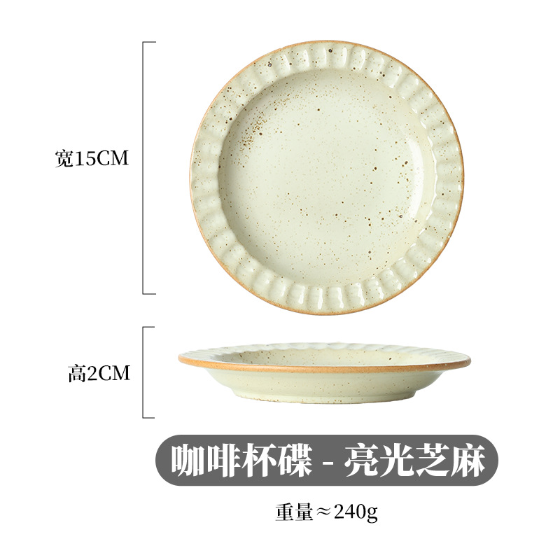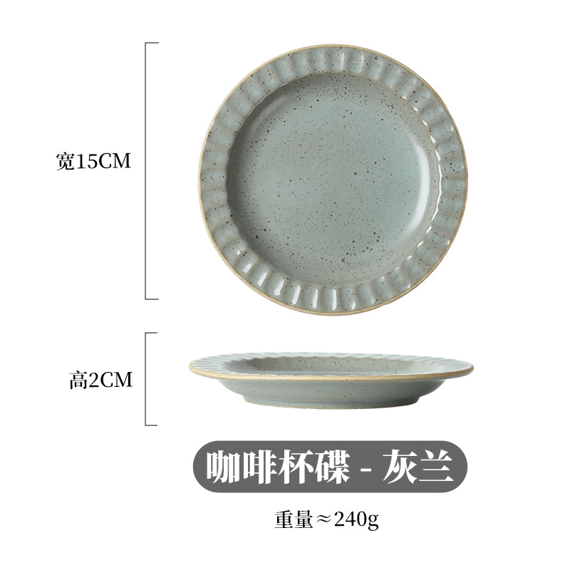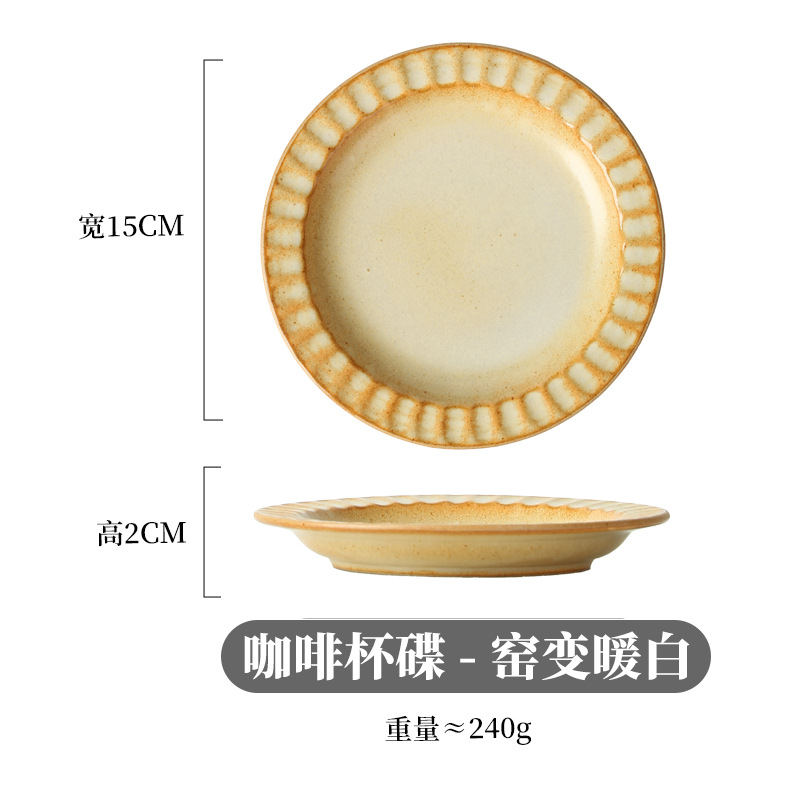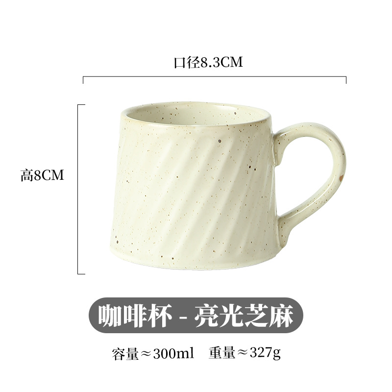 复古陶瓷条纹杯 手绘粗陶马克杯下午茶牛奶咖啡杯 意式怀旧风杯碟