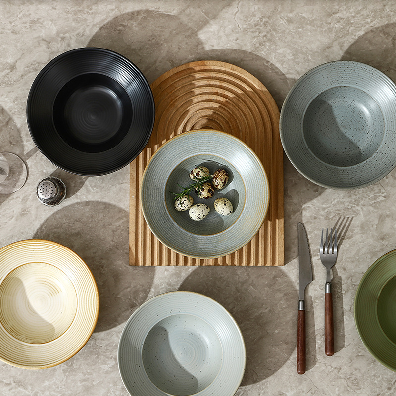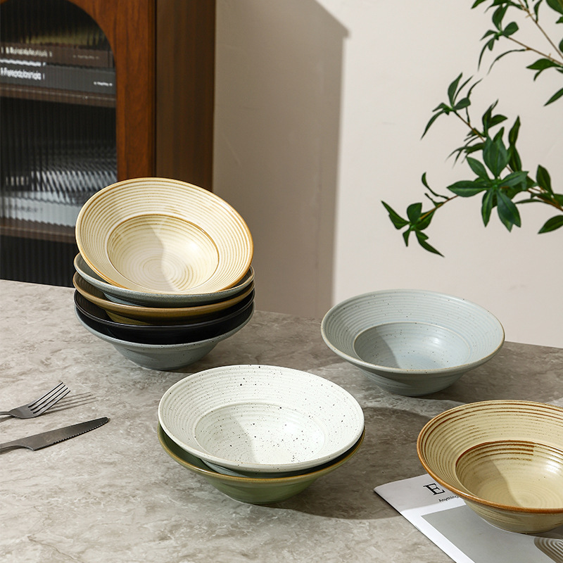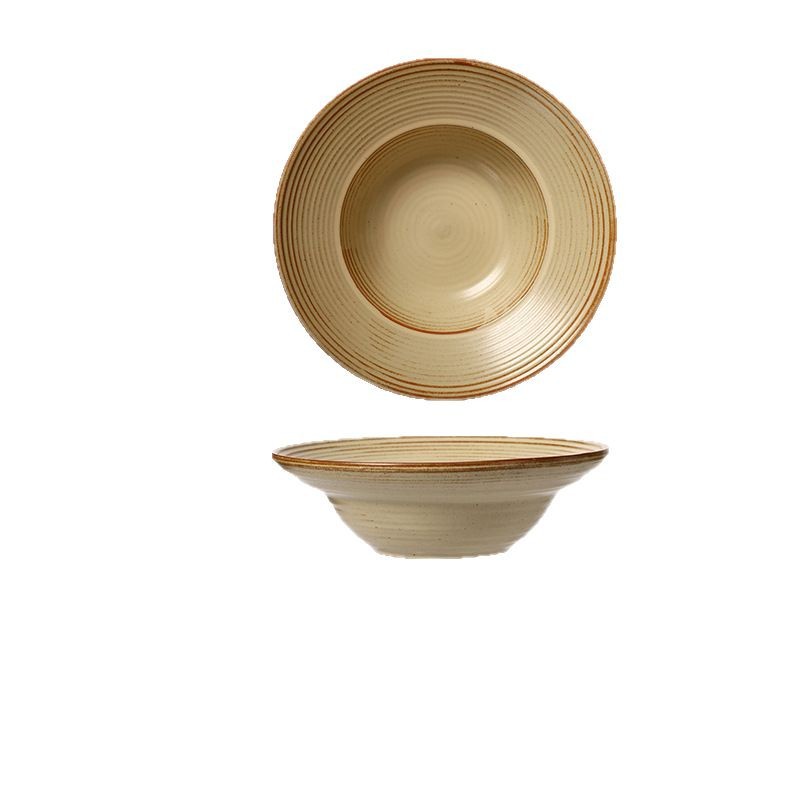 跨境日式粗陶宽边碗复古沙拉甜品草帽碗商用早餐麦片点心碗陶瓷碗