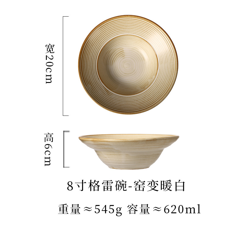 8寸雷格碗-窑变暖白