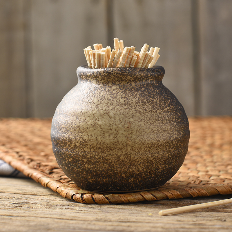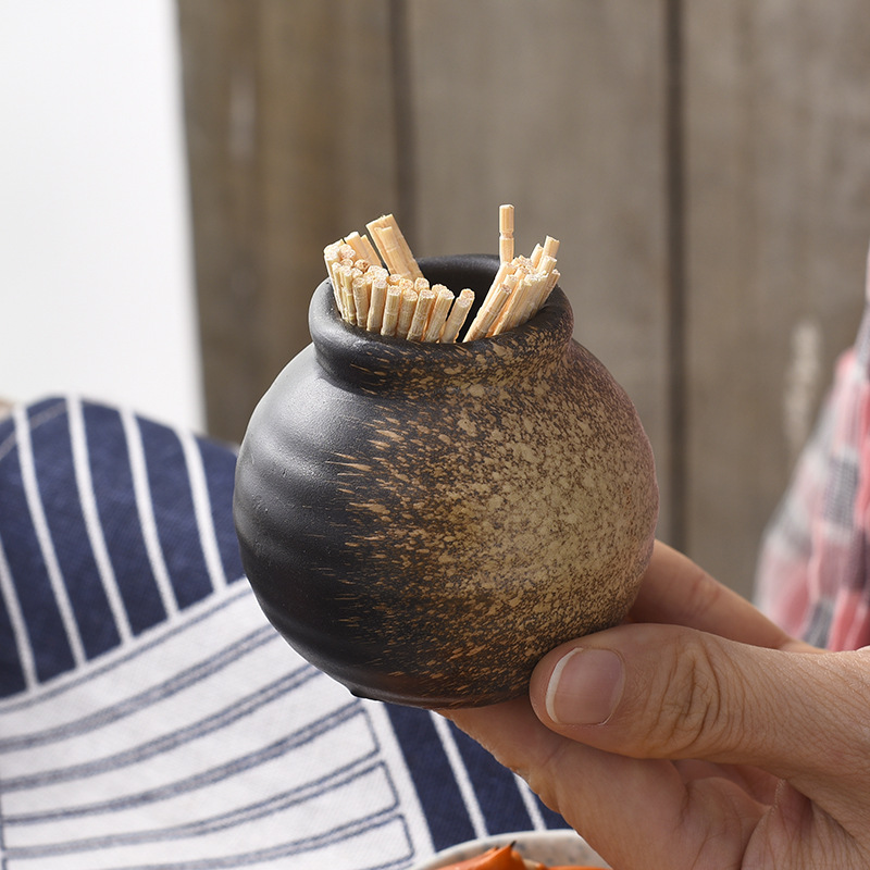 日韩式陶瓷牙签筒创意个性复古牙签罐干冰香精瓶商用酒店餐厅摆台