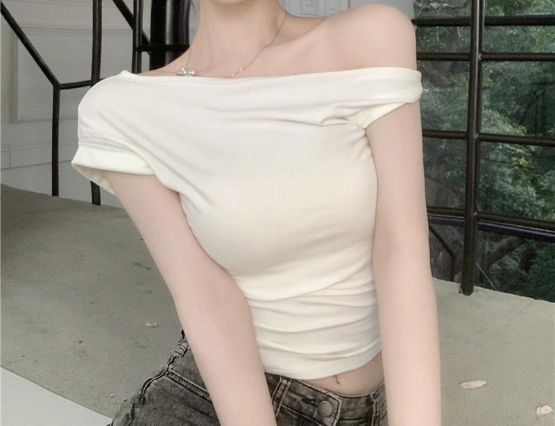 纯欲风露肩T恤女夏季新款辣妹修身显瘦不规则设计感小众上衣