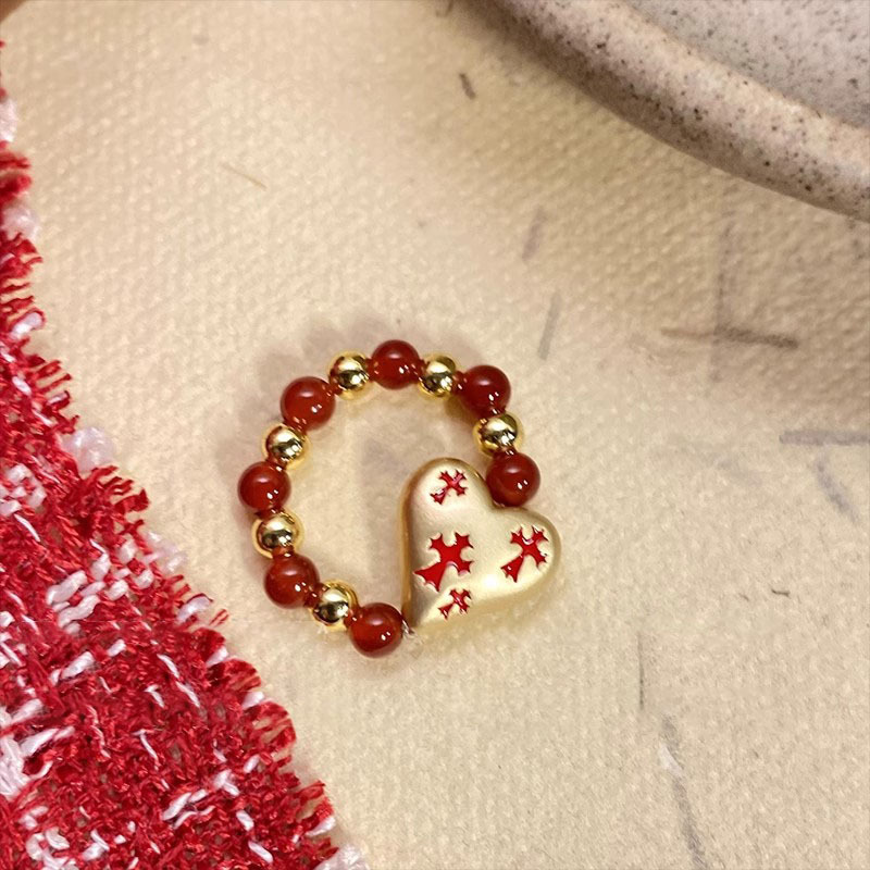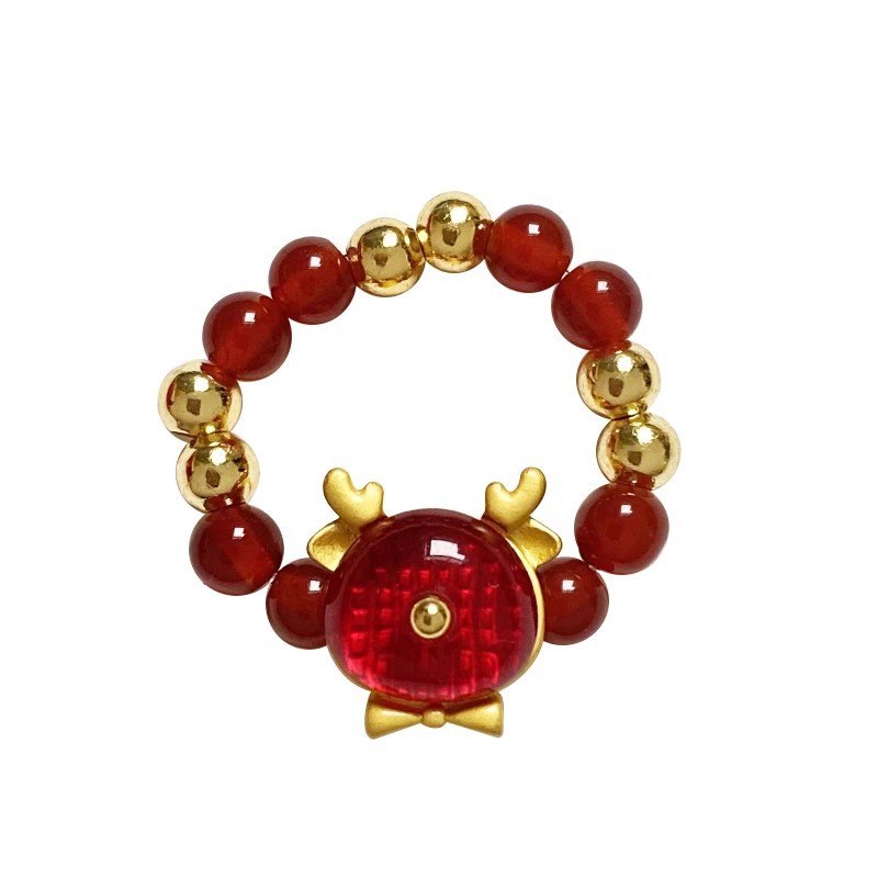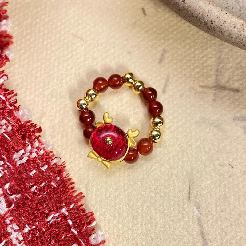 过年仪式感!福字吊坠串珠戒指女小众设计高级感新年红色戒指