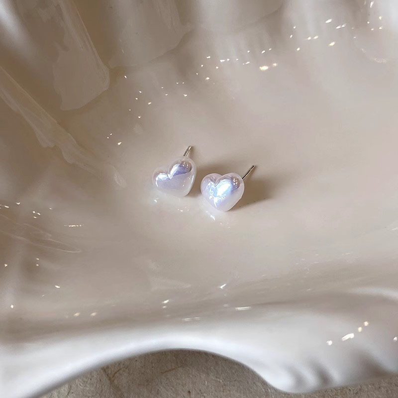 法式人鱼姬爱心珍珠耳钉女新款轻奢高级感气质耳环心形耳饰品