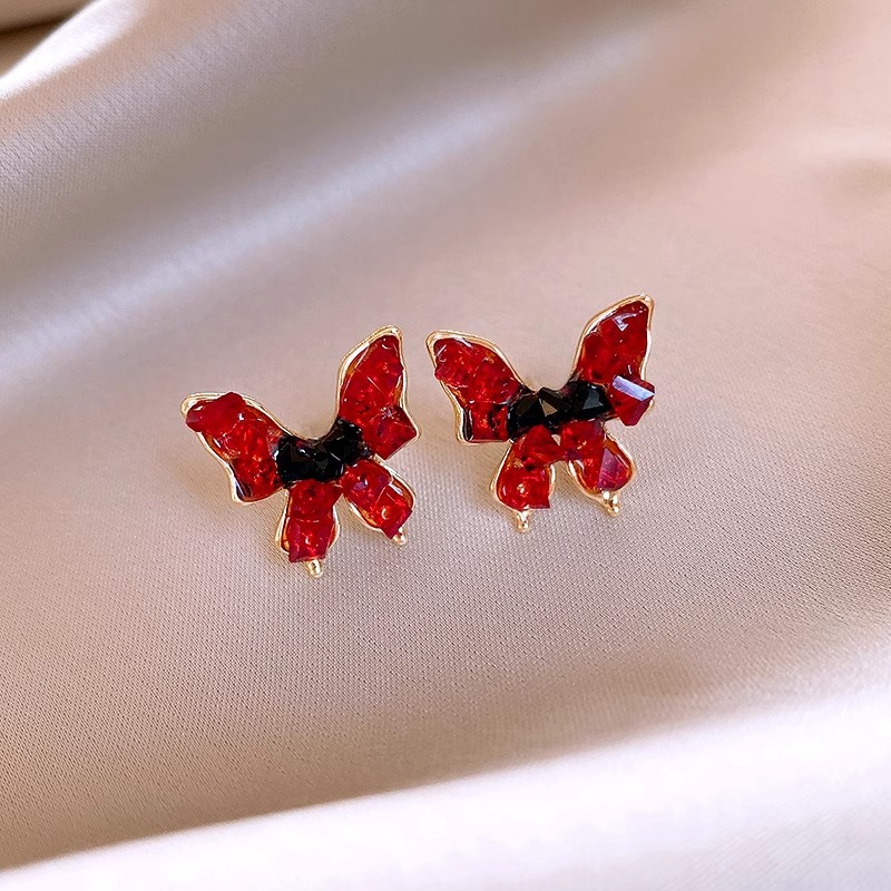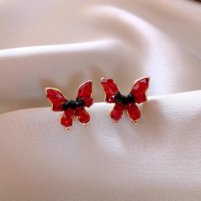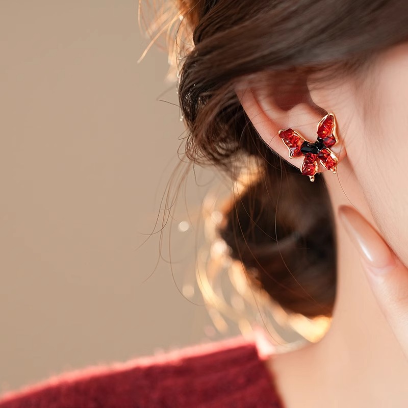 复古红色水晶耳环新款爆款安可拉耳饰高级轻奢气质绝美耳钉女