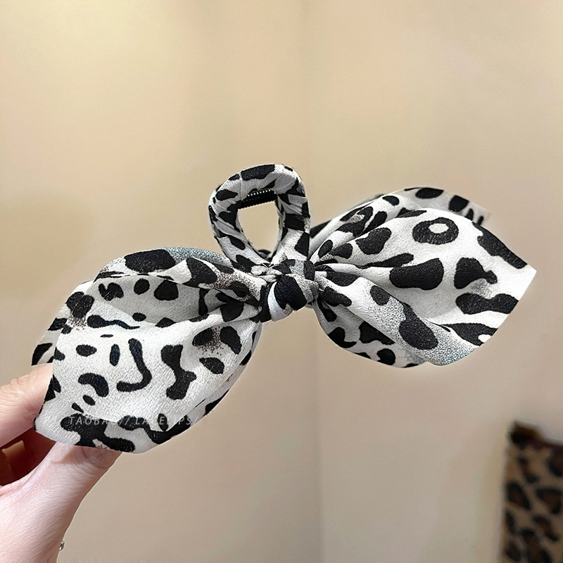 豹纹蝴蝶结抓夹女2025新高级感大号鲨鱼夹发夹后脑勺盘发夹子发饰