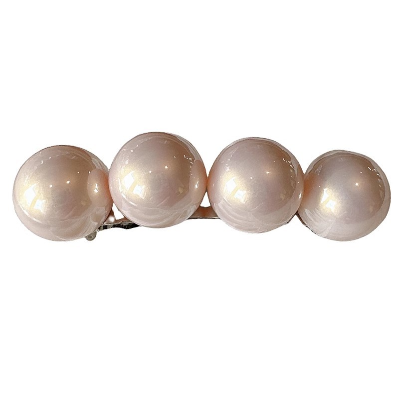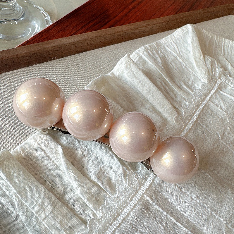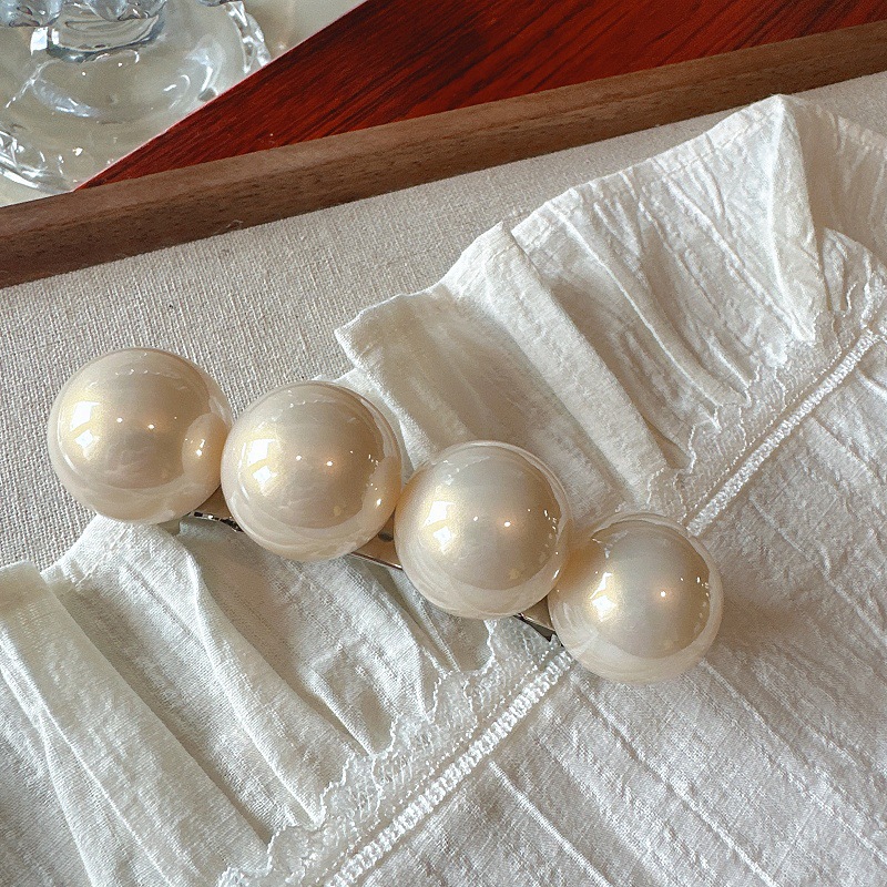 韩国爆款大颗珍珠一字发夹弹簧夹复古气质发饰边夹立体顶夹女发卡