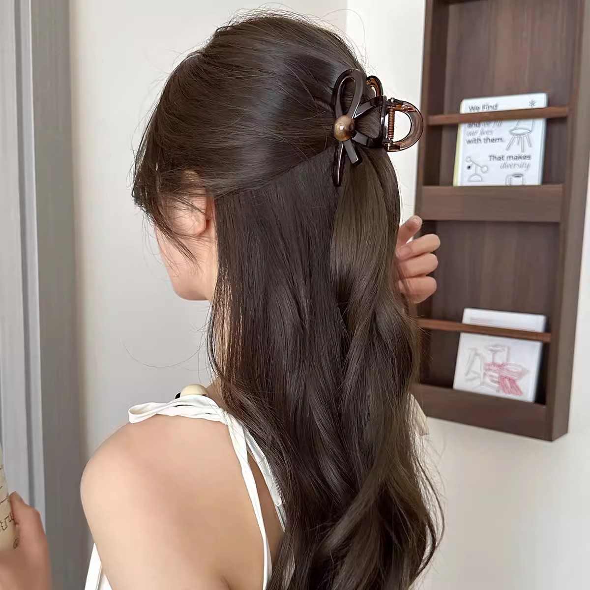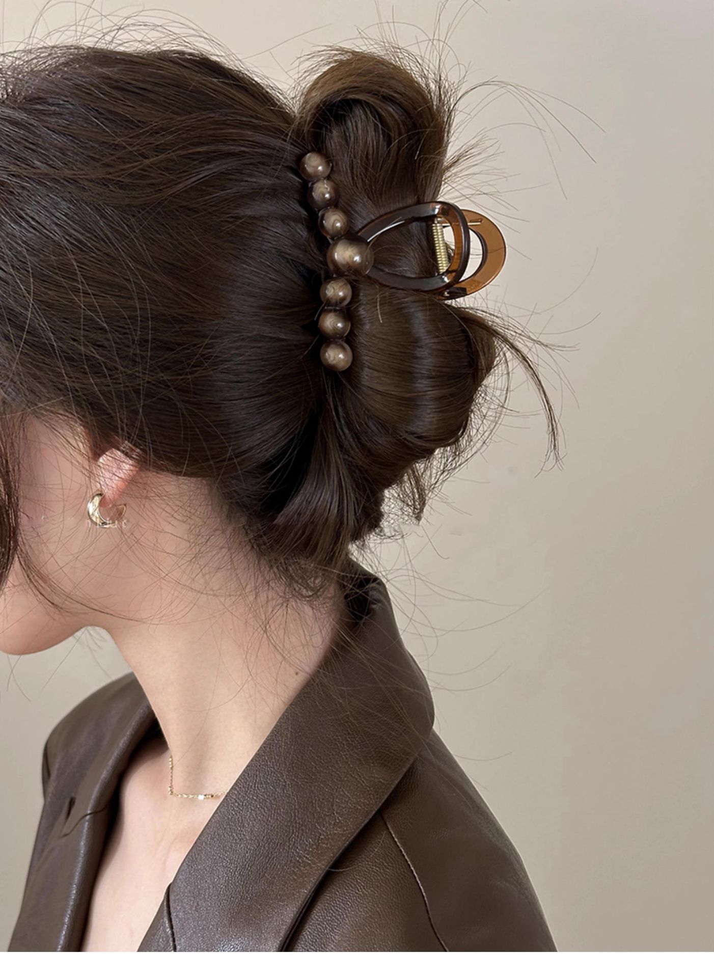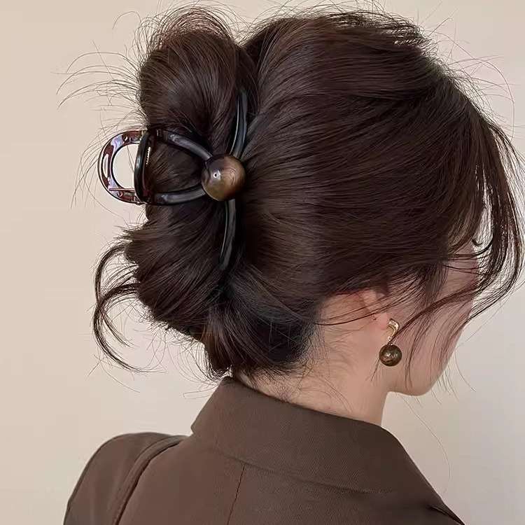 气质渐变圆珠高级感抓夹女盘发量大后脑勺鲨鱼夹大号发夹新款
