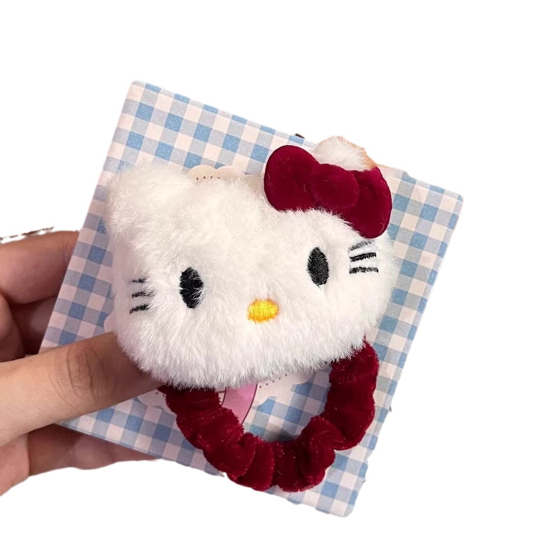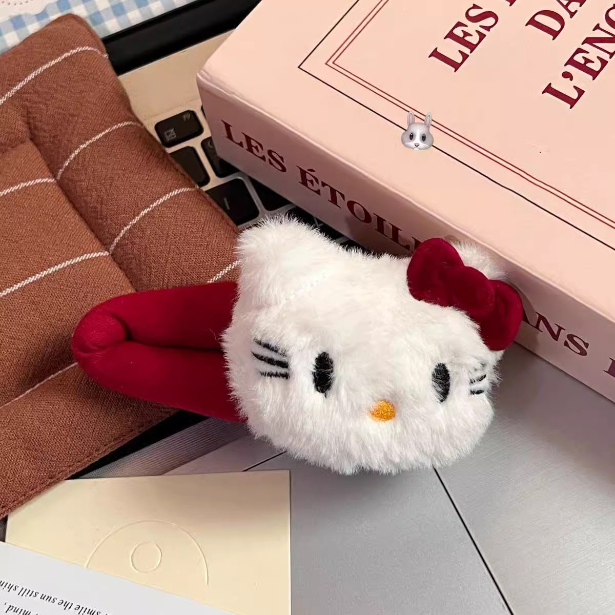 爆款可爱毛绒Kitty甜美安可拉红系蝴蝶结发夹少女刘海卡通BB发饰