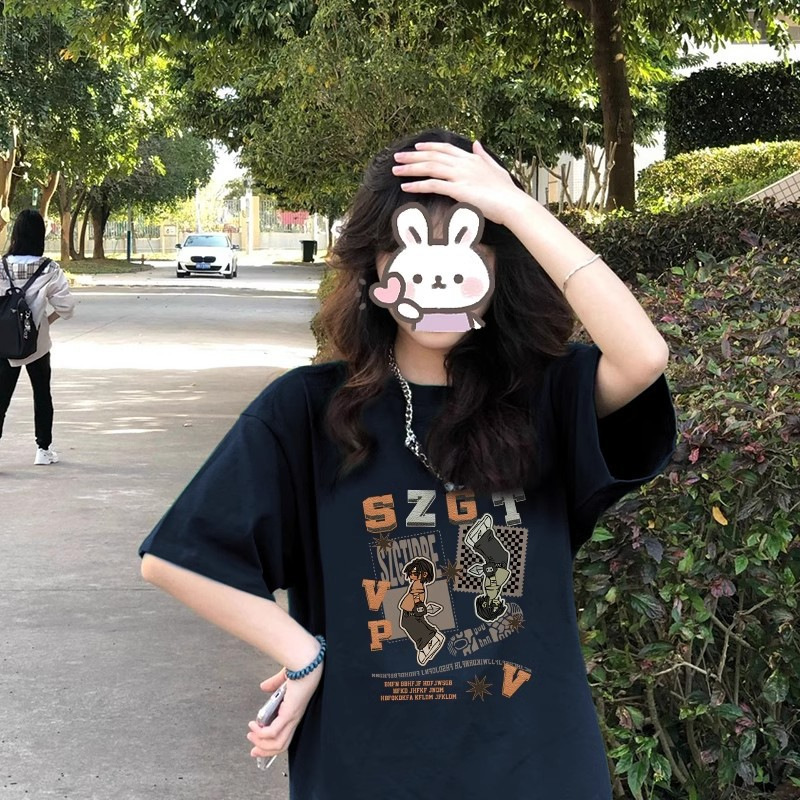 纯棉短袖t恤女夏季新款小个子美式小众设计感宽松半袖上衣潮