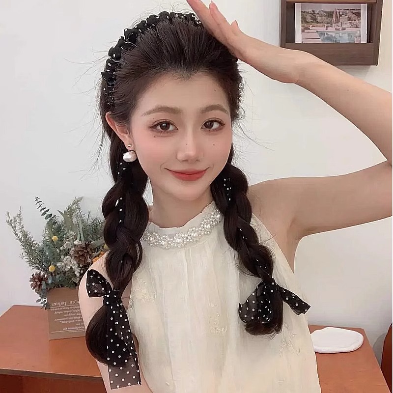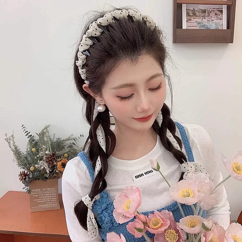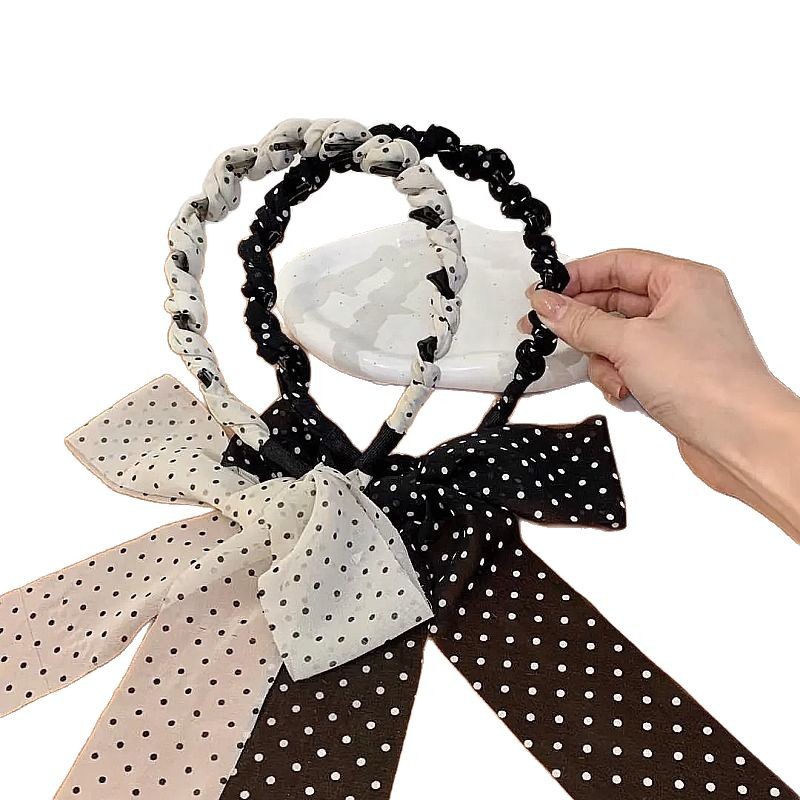 波点飘带发箍女新款时尚气质发带丝巾绑发外出百搭编发头饰发饰品