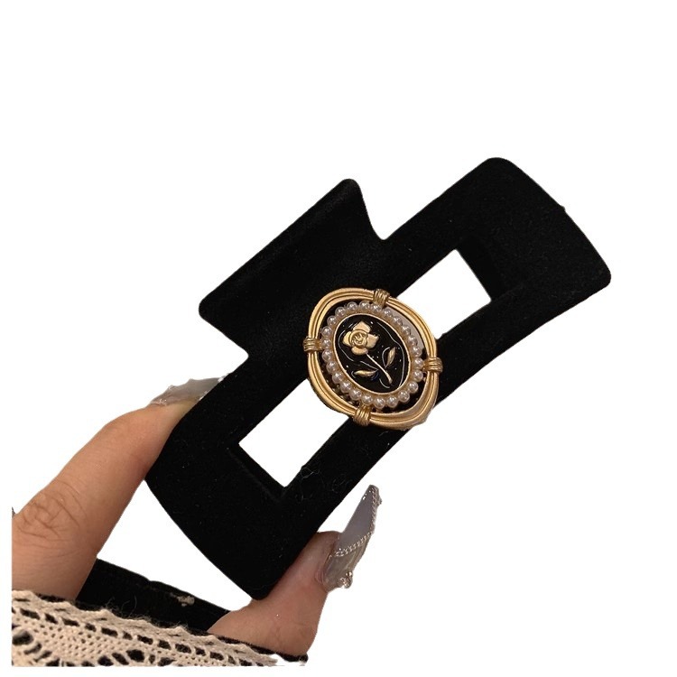 黑色玫瑰花抓夹~丝绒复古法式小香风年秋冬新款鲨鱼夹发夹女