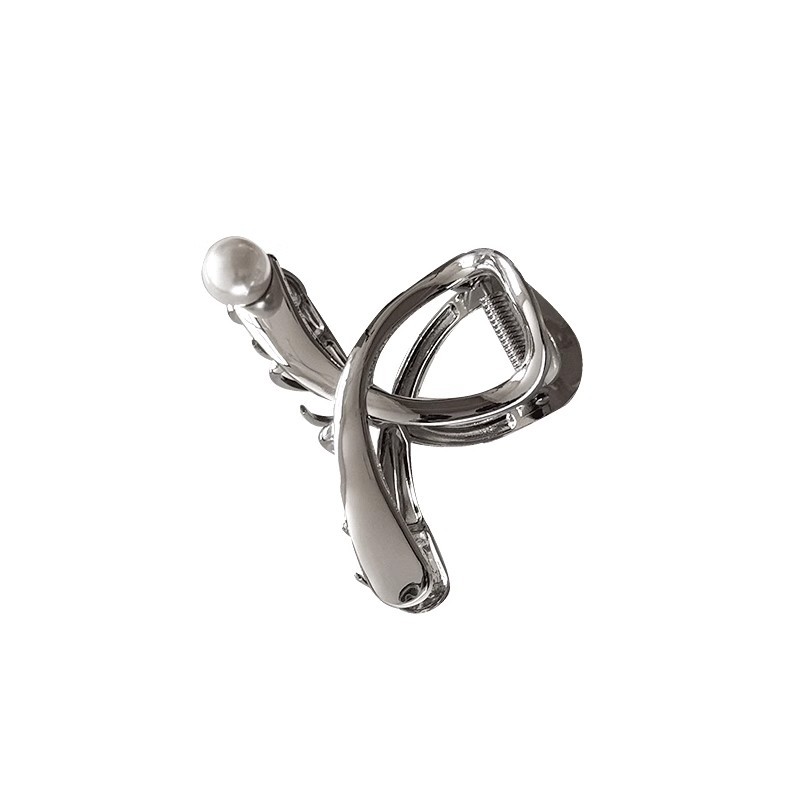 金属交叉珍珠抓夹女新款高级感发夹后脑勺中号鲨鱼夹盘发头饰