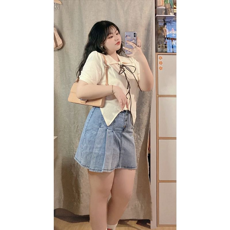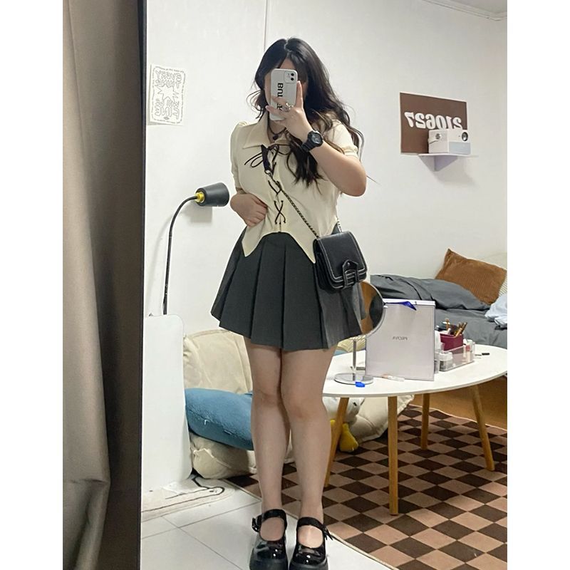 大码女装领正肩短袖恤女夏泡泡袖收腰衬衫显瘦遮肉辣妹上衣