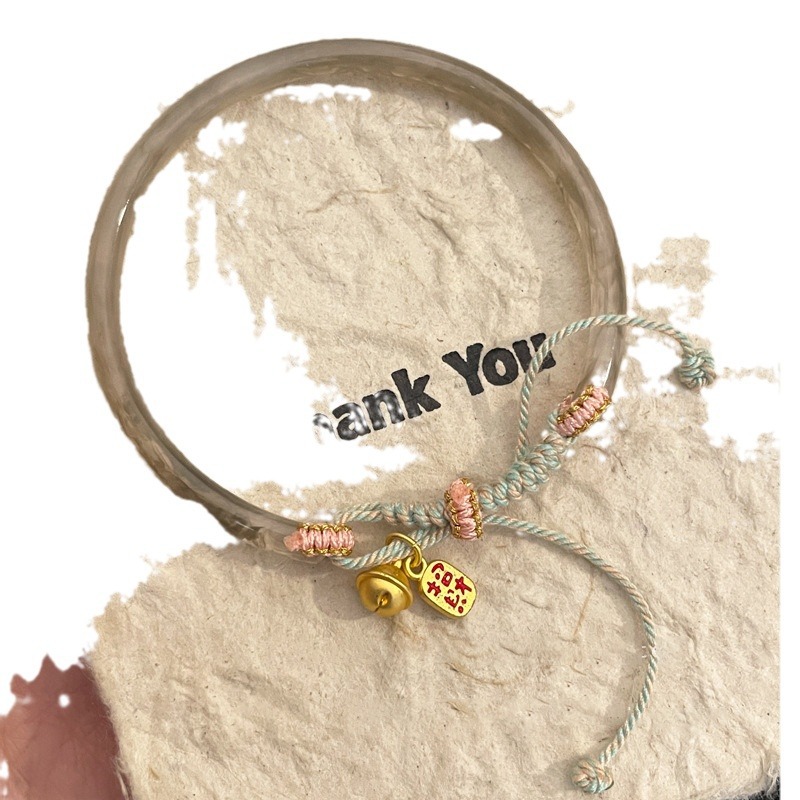 招财纳福铃铛编织手链女年新款树脂素圈手镯轻奢小众精致手饰
