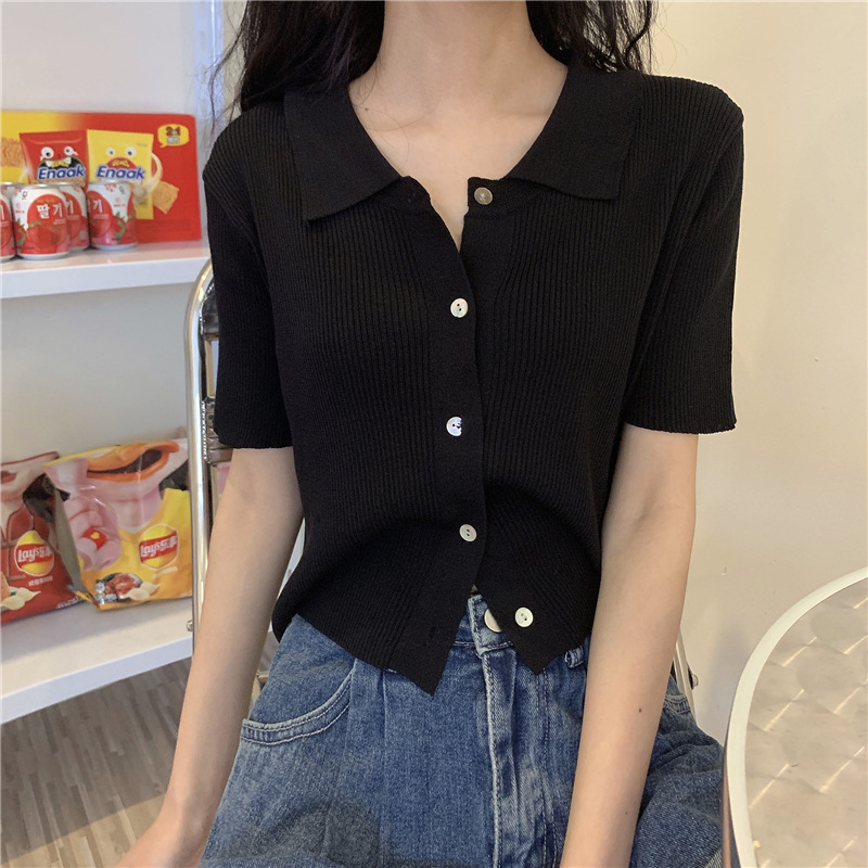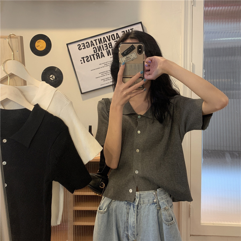 polo衫女短袖夏装新款韩风chic高腰露脐半袖t恤短款上衣ins潮