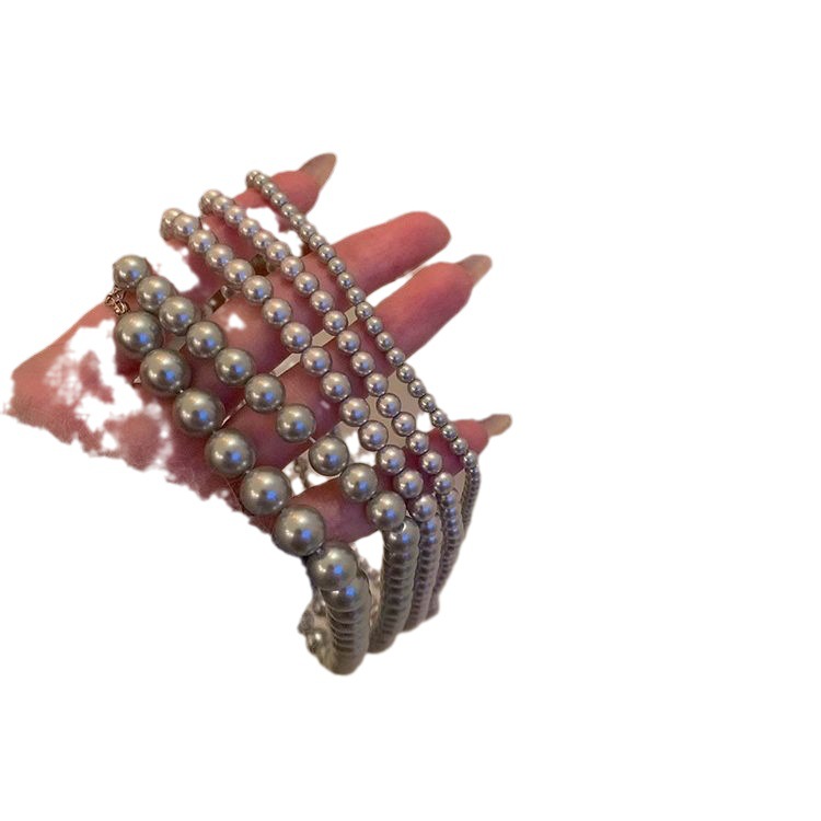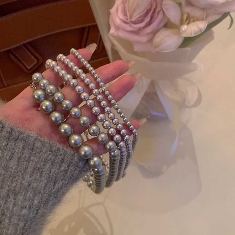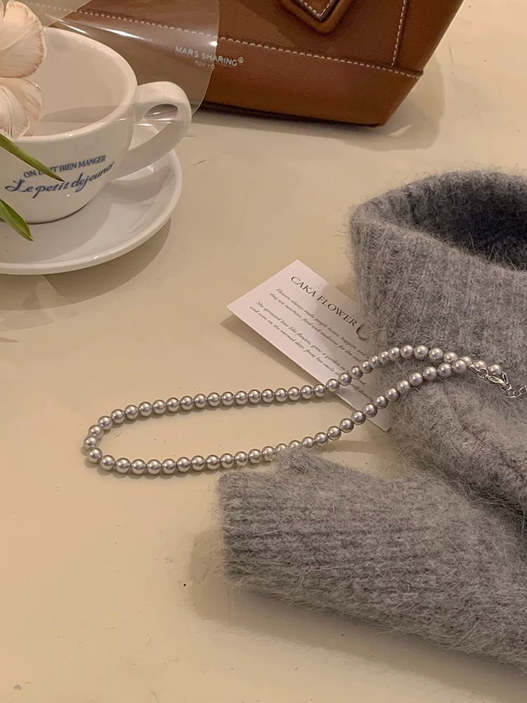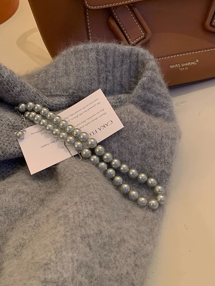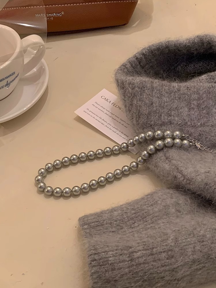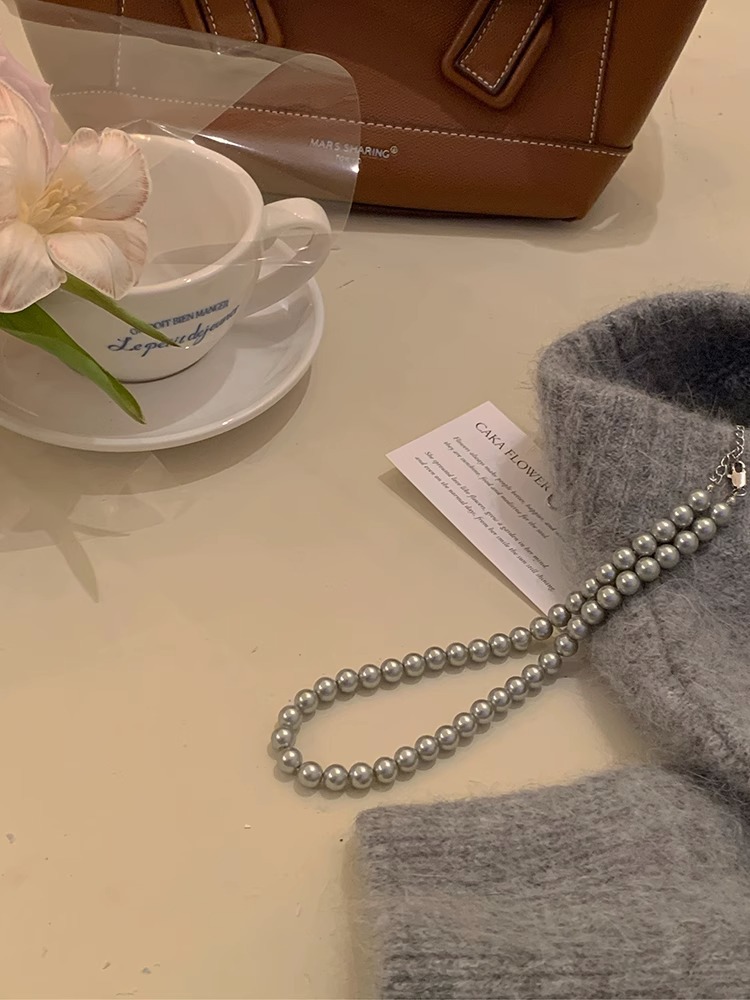 复古灰珍珠项链女新款爆款锁骨小众高级感颈链大气长款毛衣链