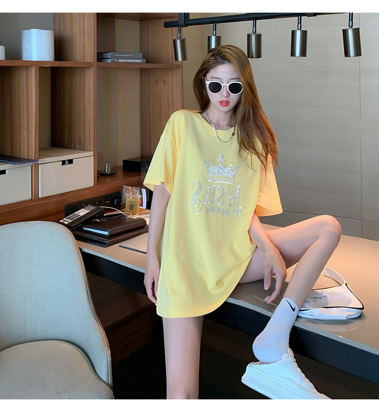 亮片刺绣短袖t恤女夏季新款百搭宽松时尚小众中长款半袖上衣