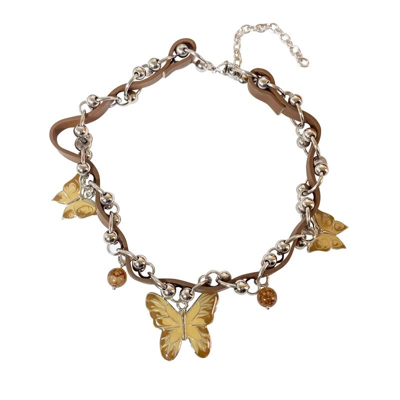 美拉德重工蝴蝶项圈女高级感复古棕色choker皮革项链轻奢小众颈链