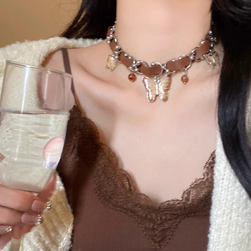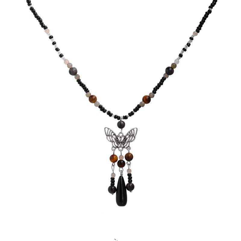 蝴蝶流苏天然石串珠项链女新中式复古民族风锁骨链小众毛衣链配饰
