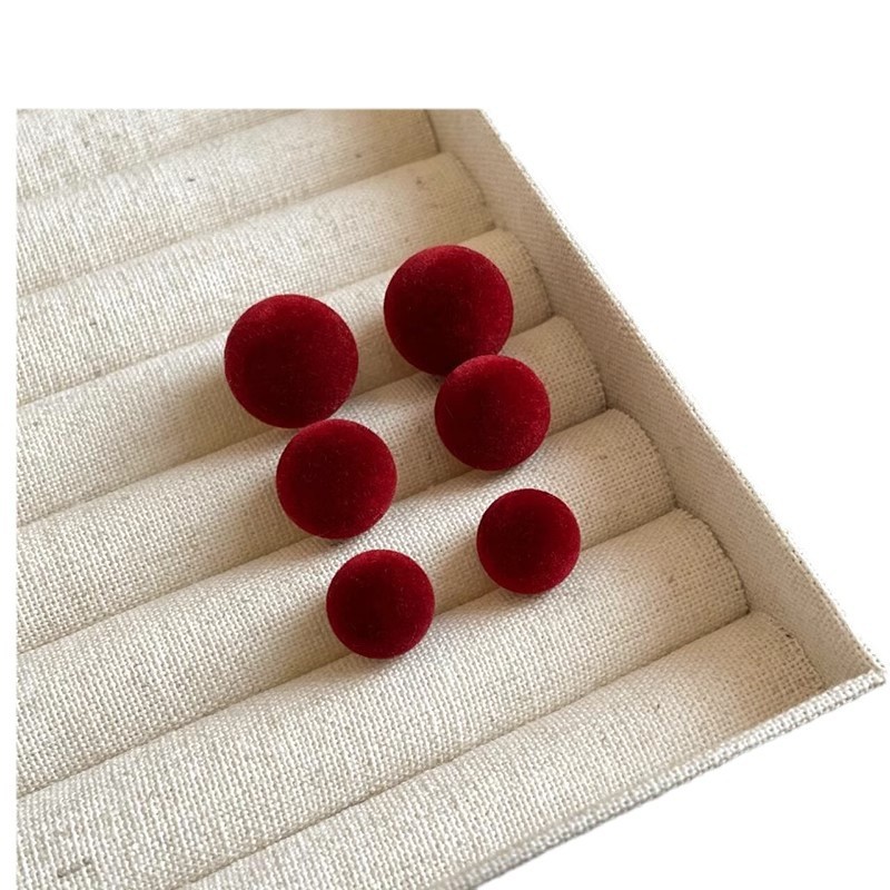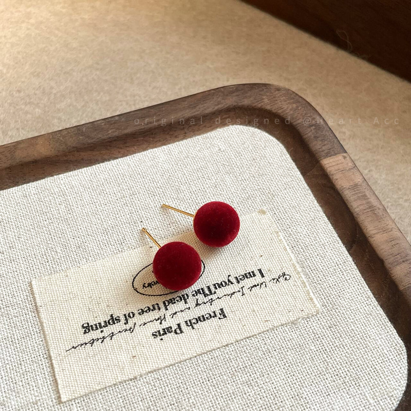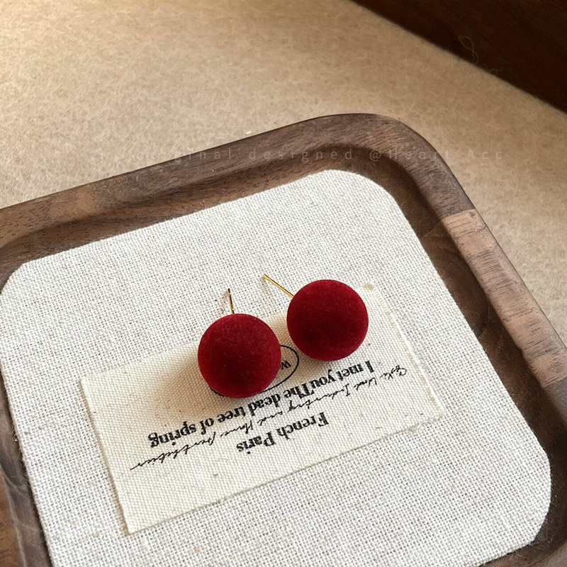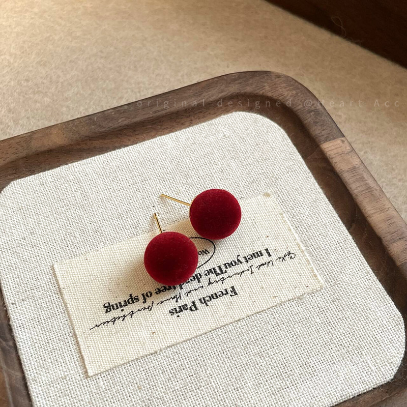 酒红色丝绒银针耳钉女士复古港风气质高级感耳环秋冬轻奢小众耳饰