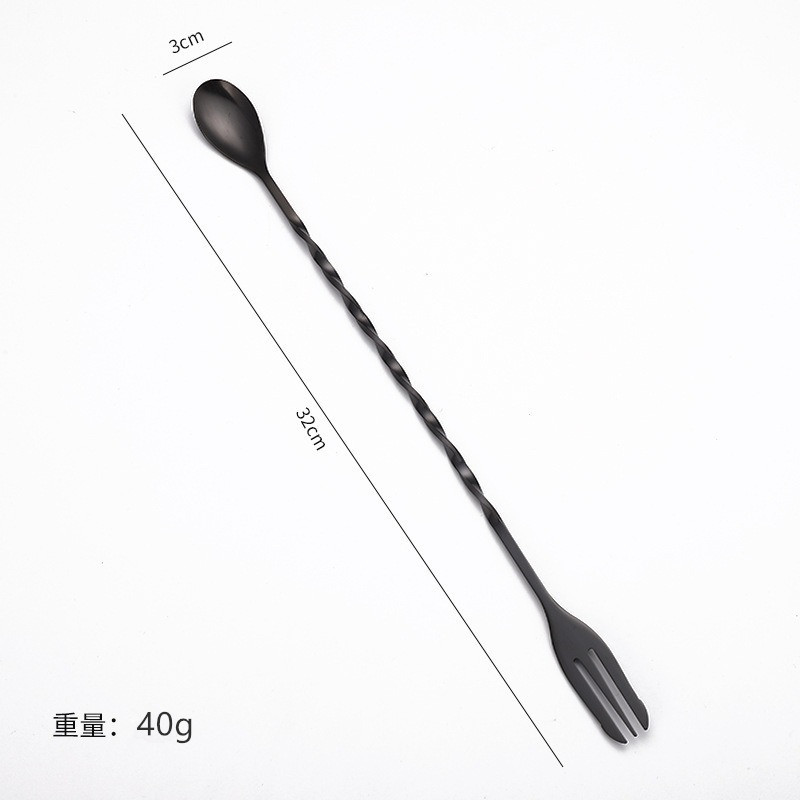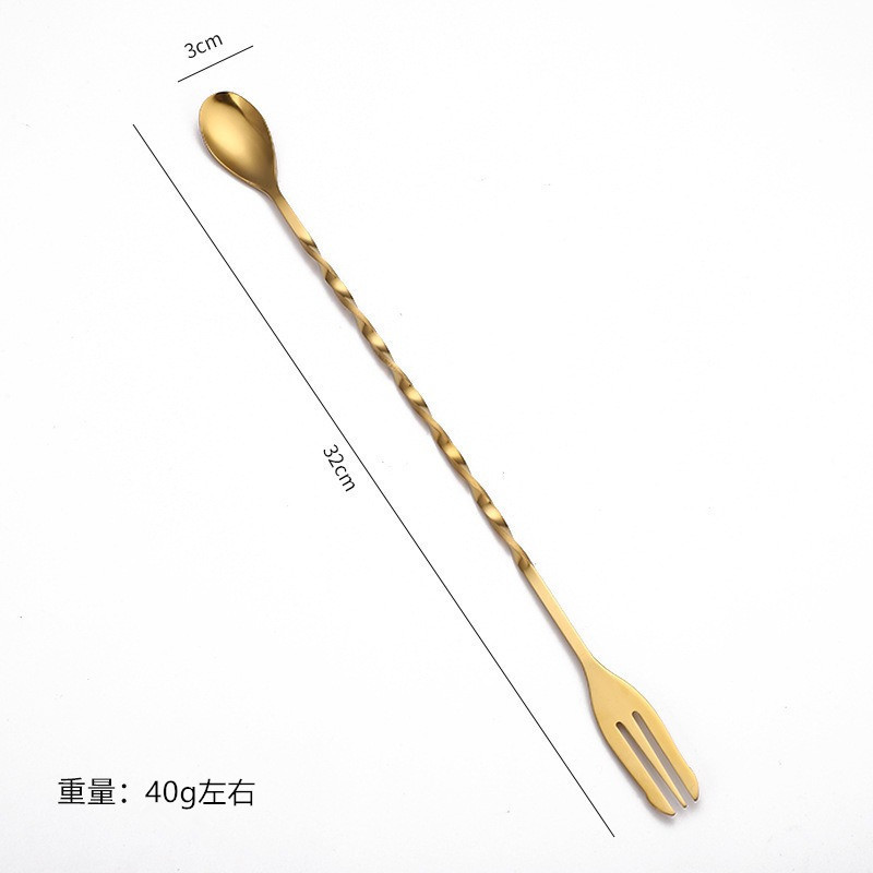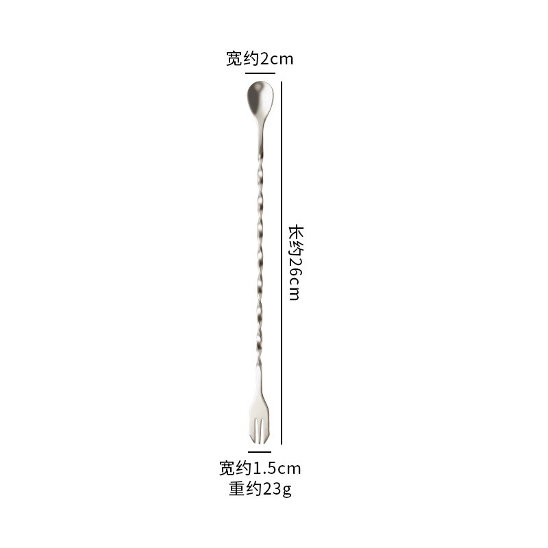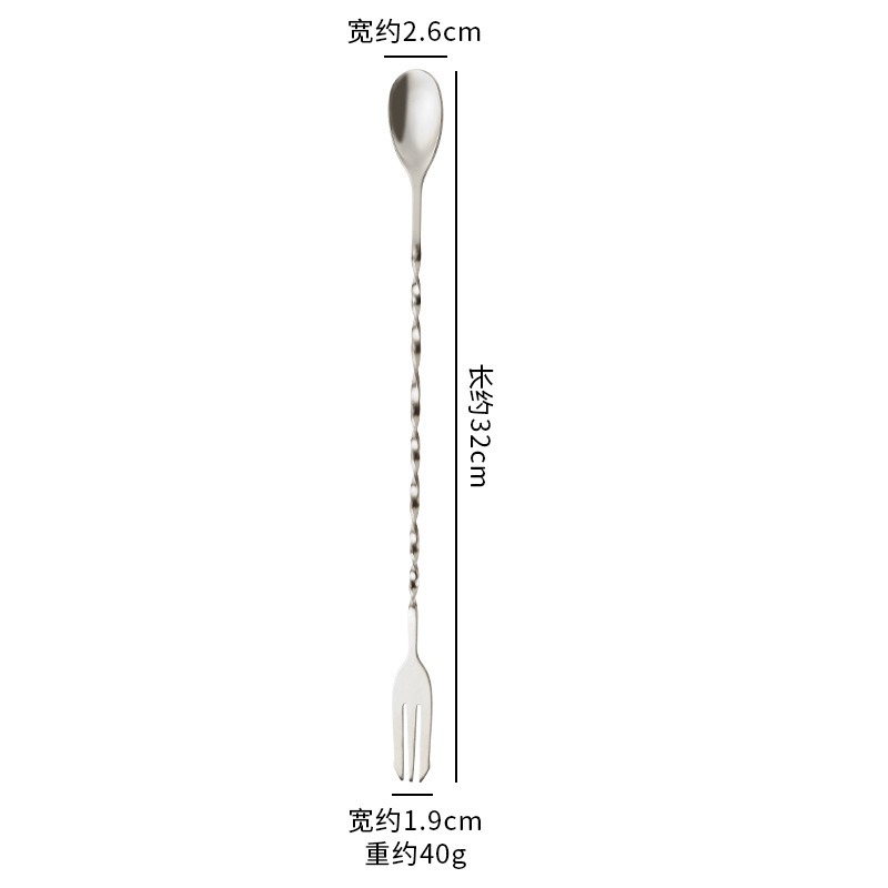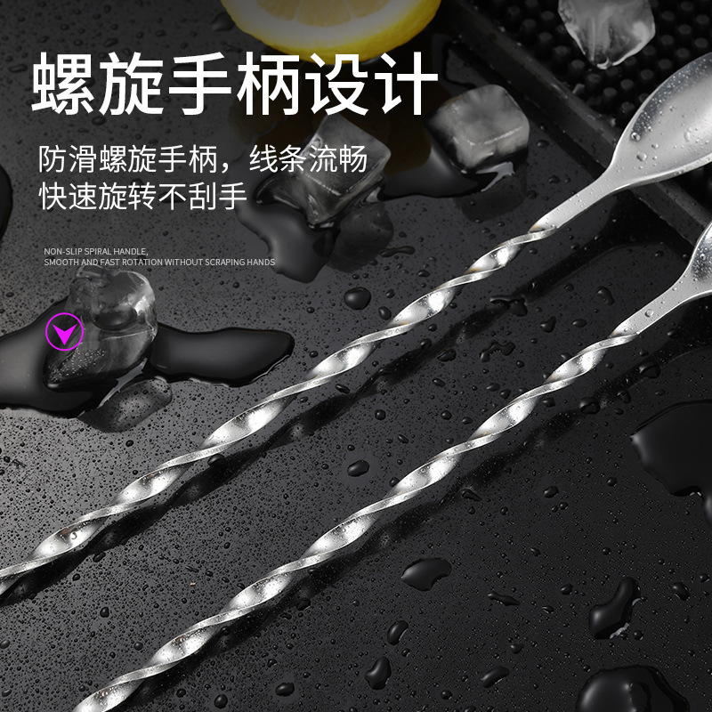 不锈钢双头吧勺304长柄冰勺酒吧吧台鸡尾酒螺旋调酒棒搅拌破冰勺