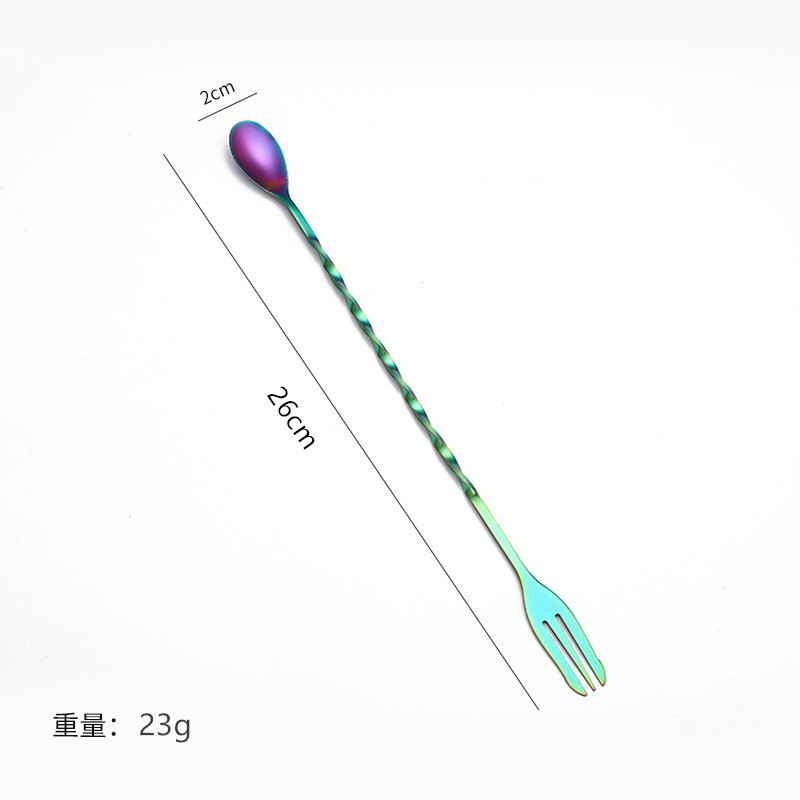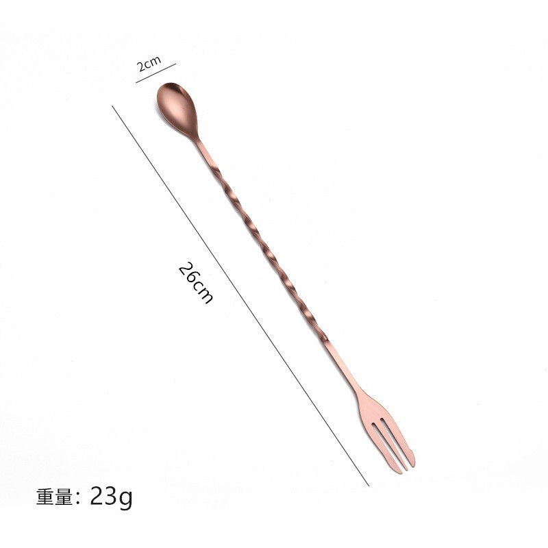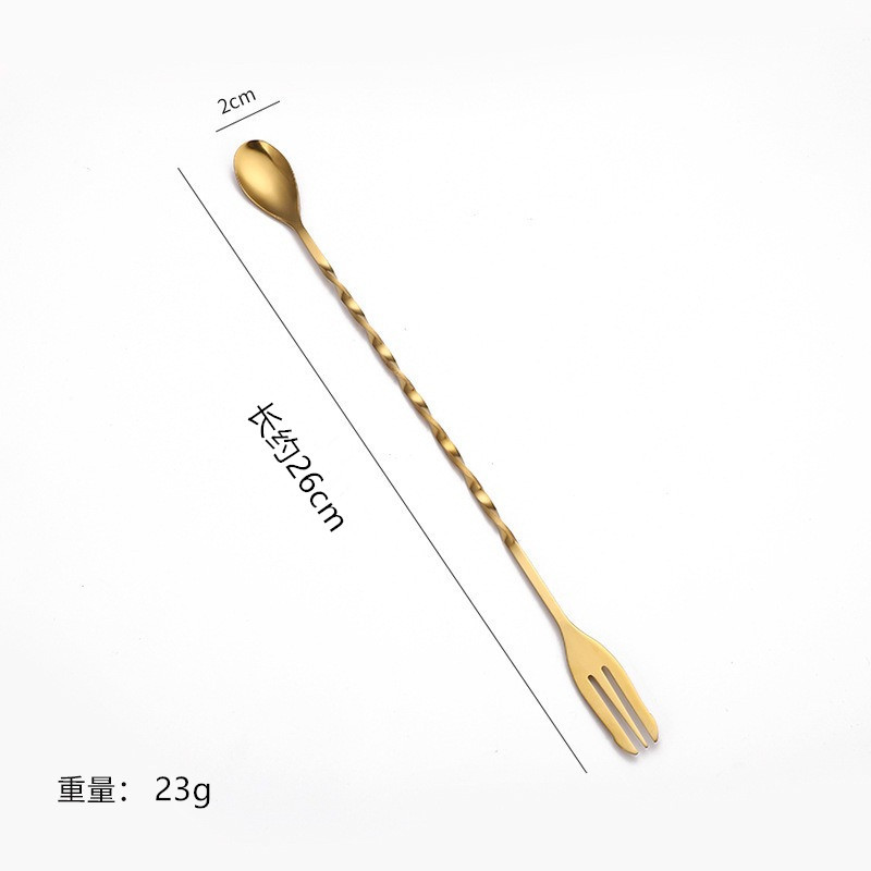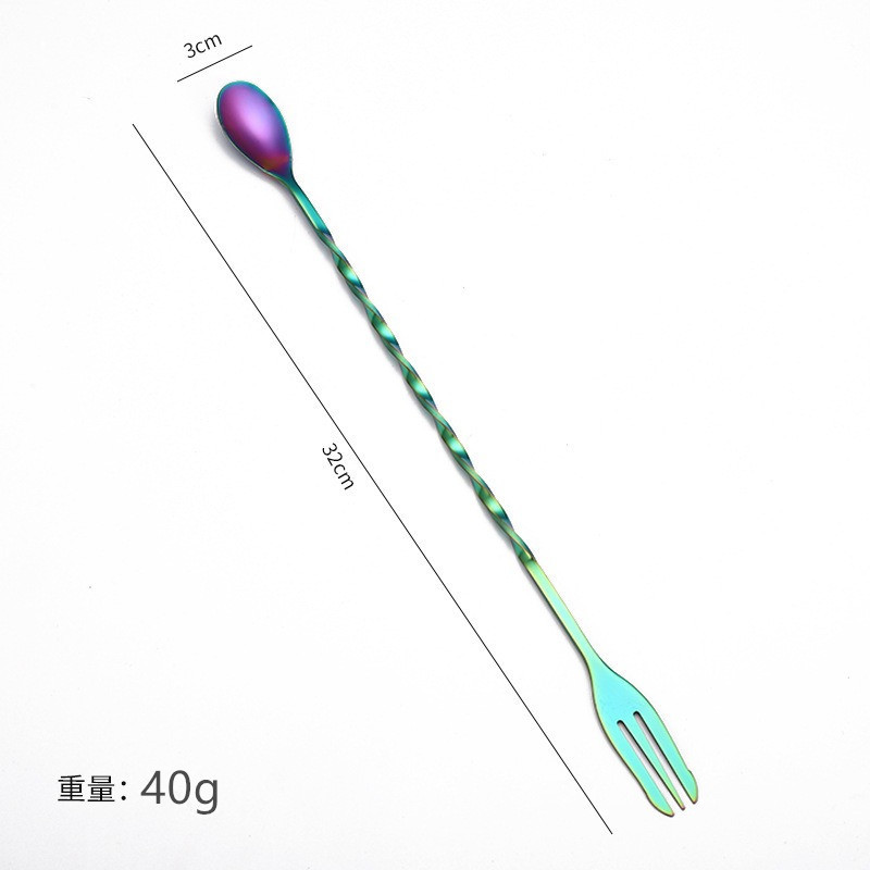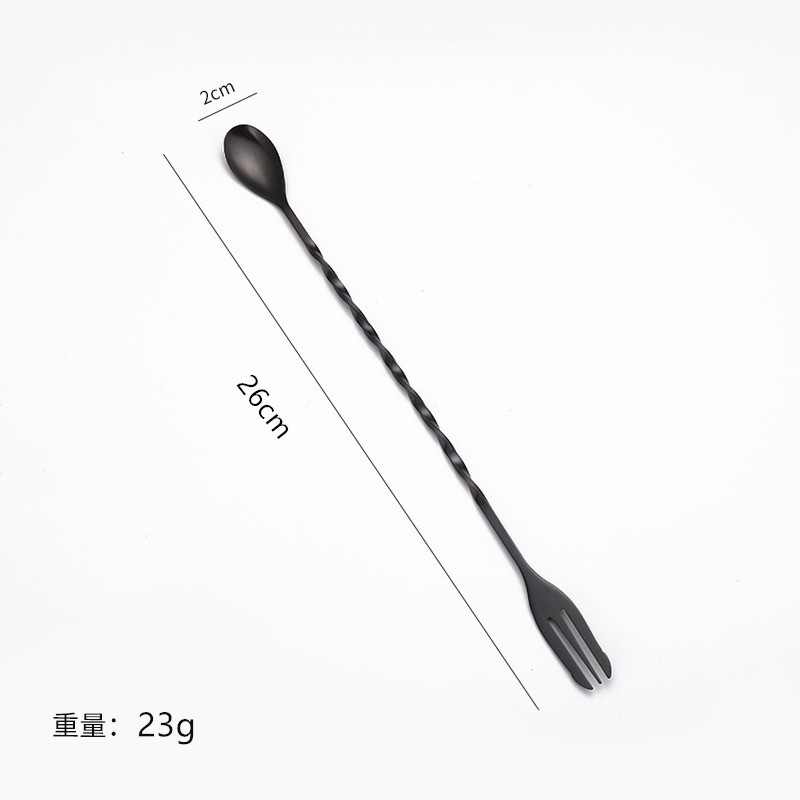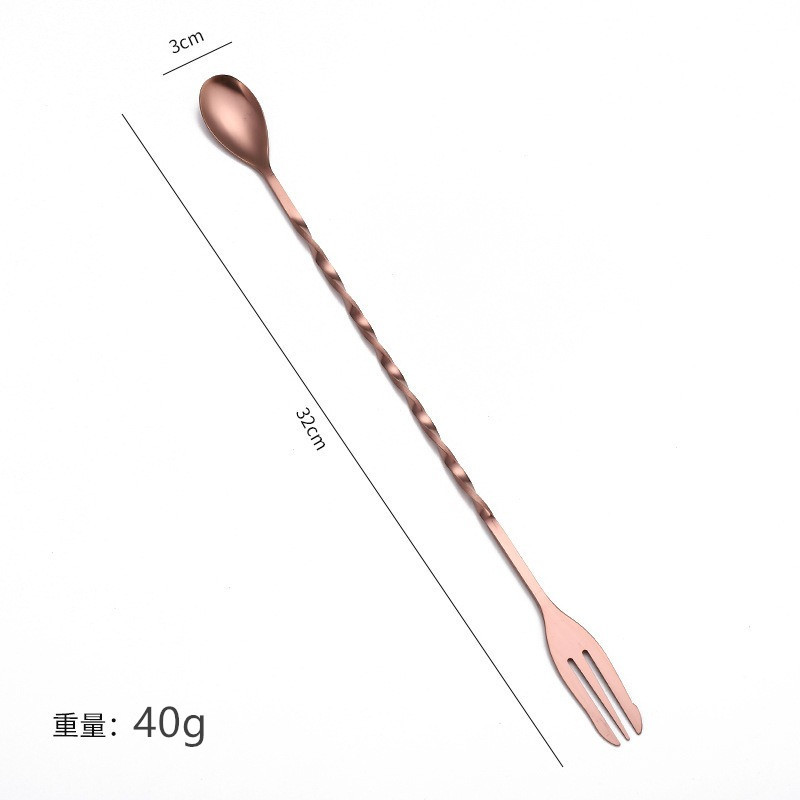 不锈钢双头吧勺304长柄冰勺酒吧吧台鸡尾酒螺旋调酒棒搅拌破冰勺