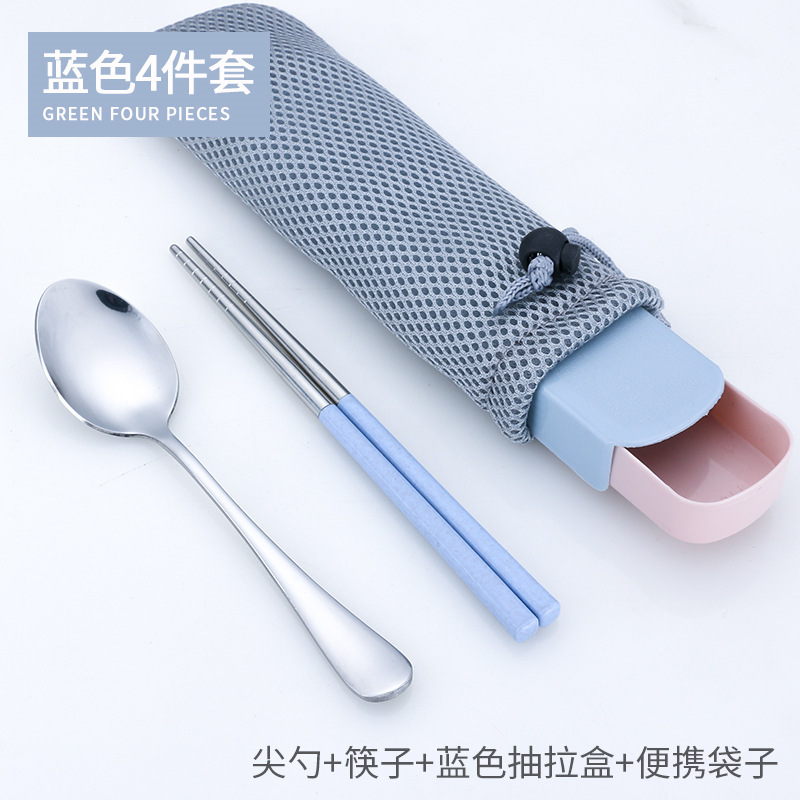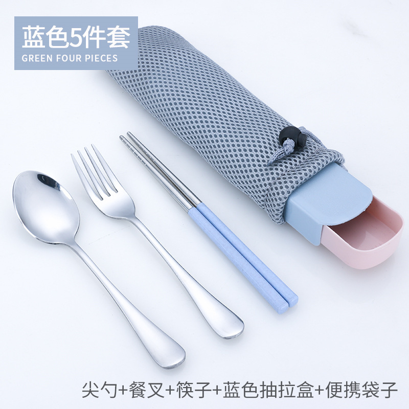 - 勺叉筷三件套+蓝色抽拉盒+袋子
