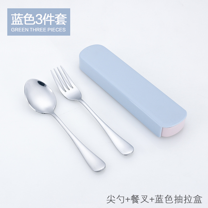 不锈钢餐具便捷式套装筷勺叉三件套带盒子学生可爱抽拉式旅行餐具