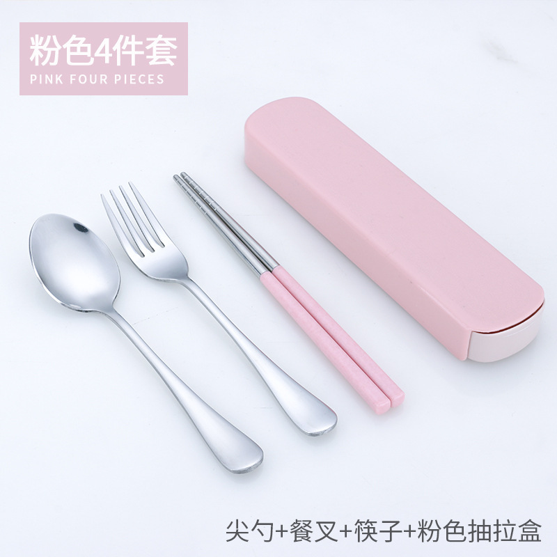 - 勺叉筷三件套+粉色抽拉盒