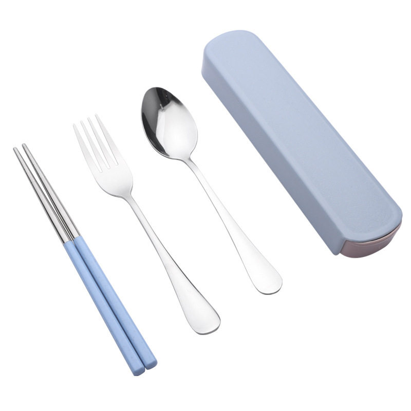 - 勺叉筷三件套+蓝色抽拉盒