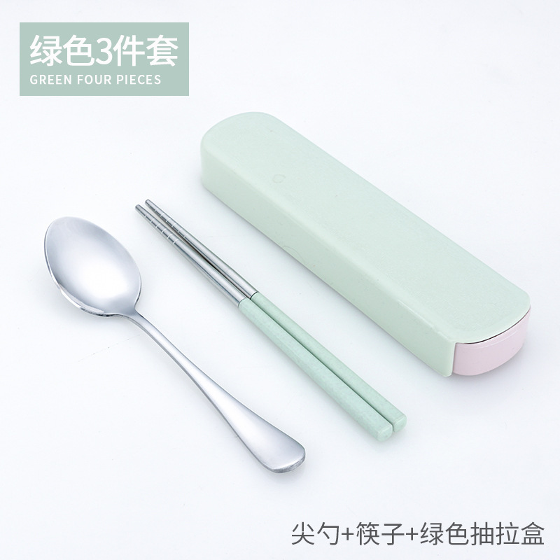 - 勺叉筷三件套+绿色抽拉盒