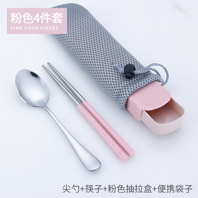 - 勺叉筷三件套+粉色抽拉盒+袋子