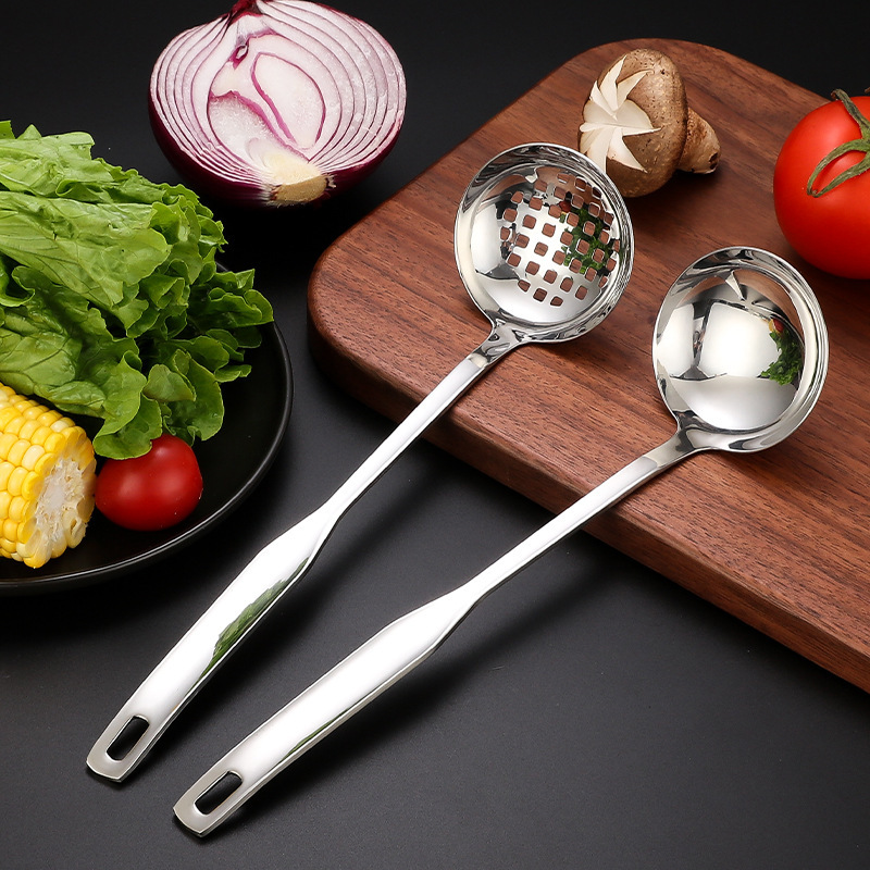 304不锈钢火锅漏勺汤勺一体加厚带挂钩家用火锅勺长柄漏汤勺套装