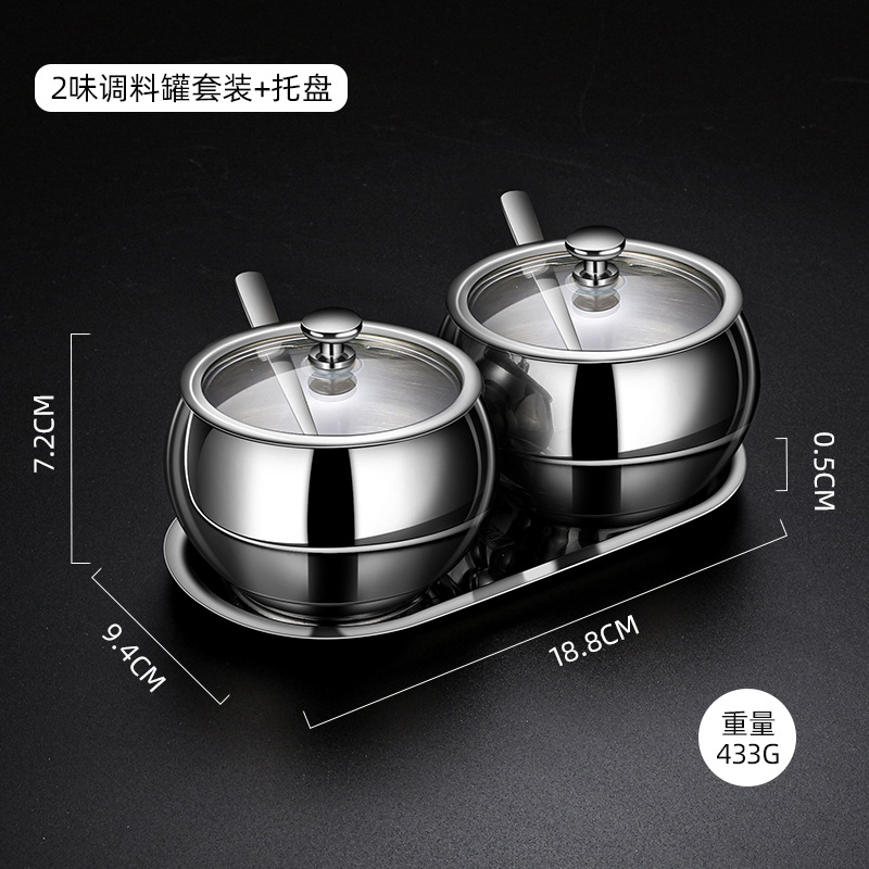 304不锈钢调料罐子厨房组合套装家用盐罐瓶辣椒调料盒调味罐送勺
