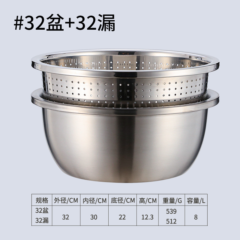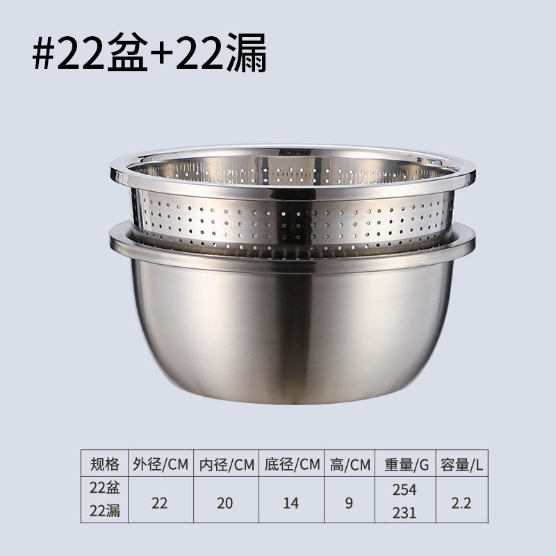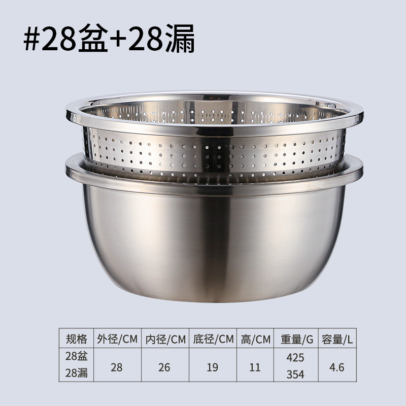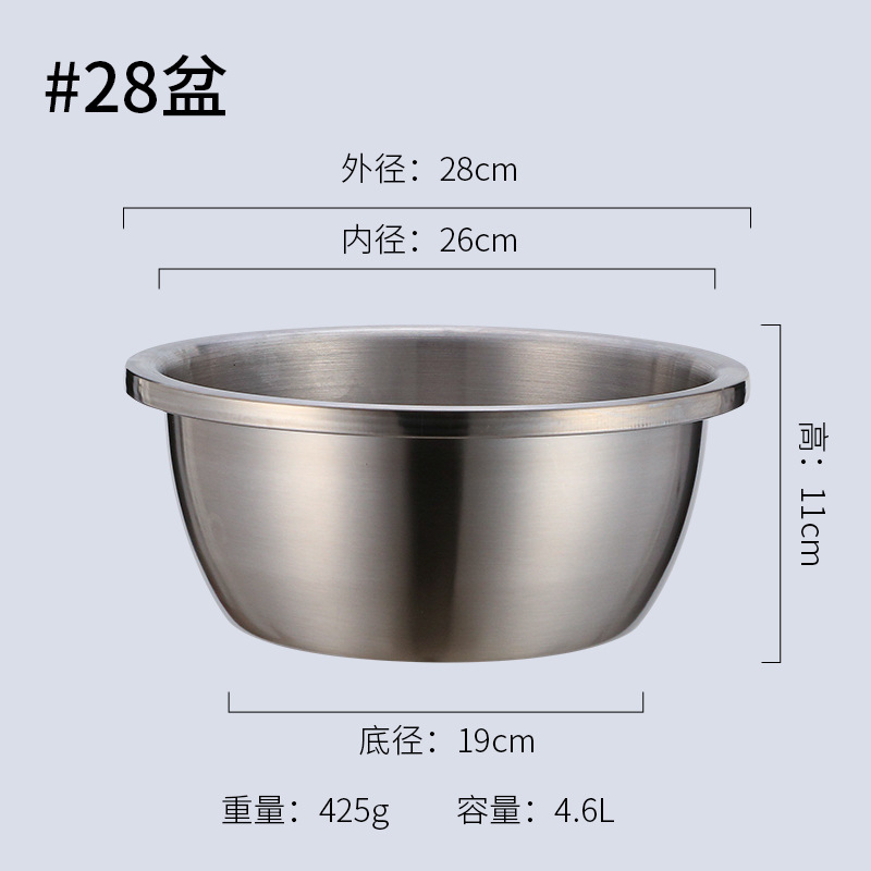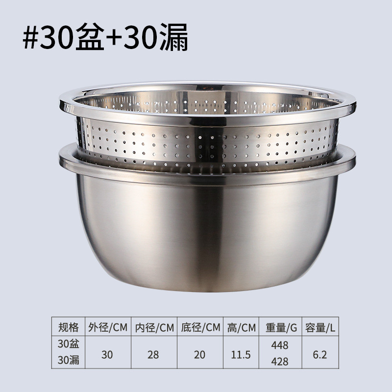 食品级304不锈钢盆家用加厚盆子多功能沥水盆汤饭洗菜盆打蛋调料
