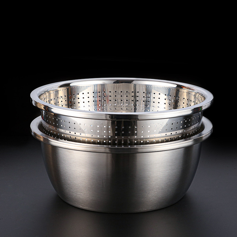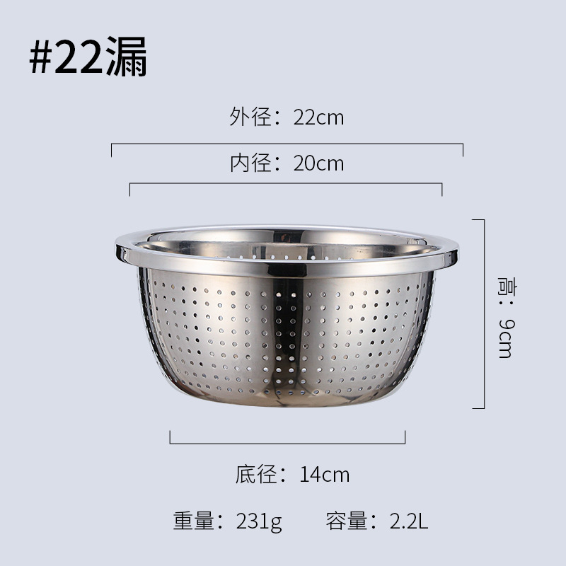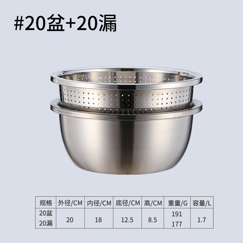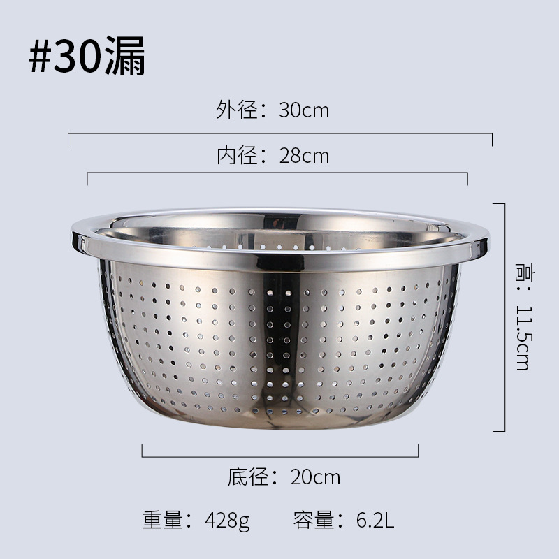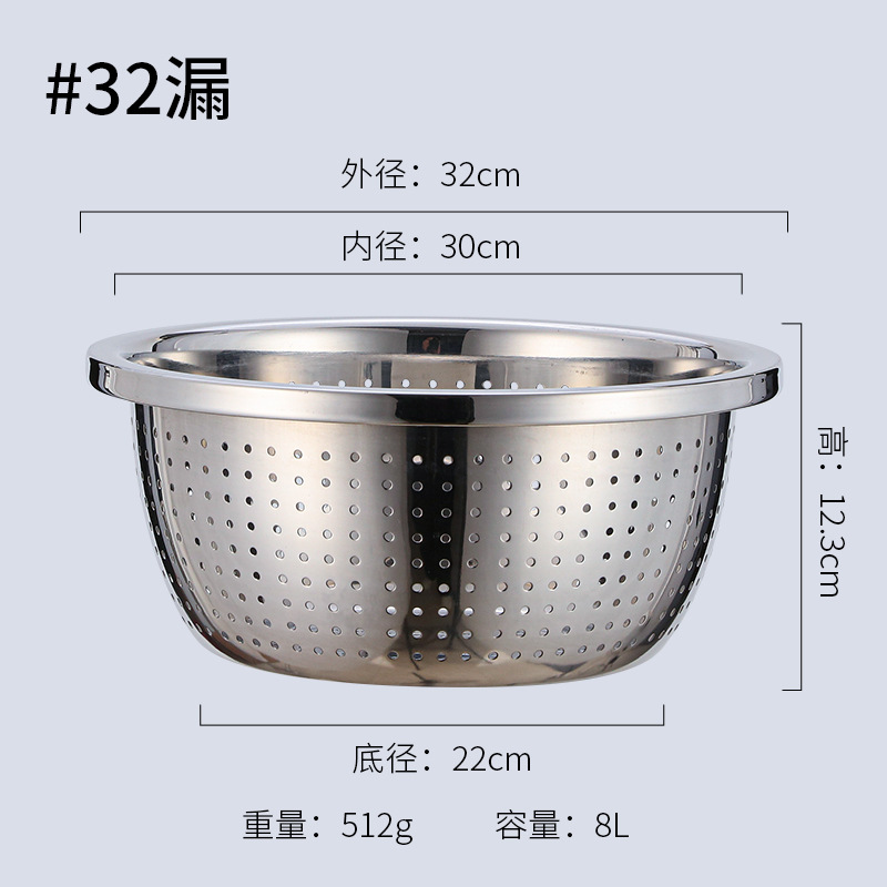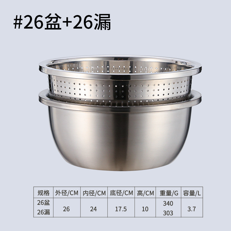 食品级304不锈钢盆家用加厚盆子多功能沥水盆汤饭洗菜盆打蛋调料