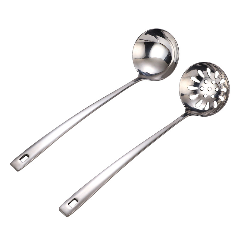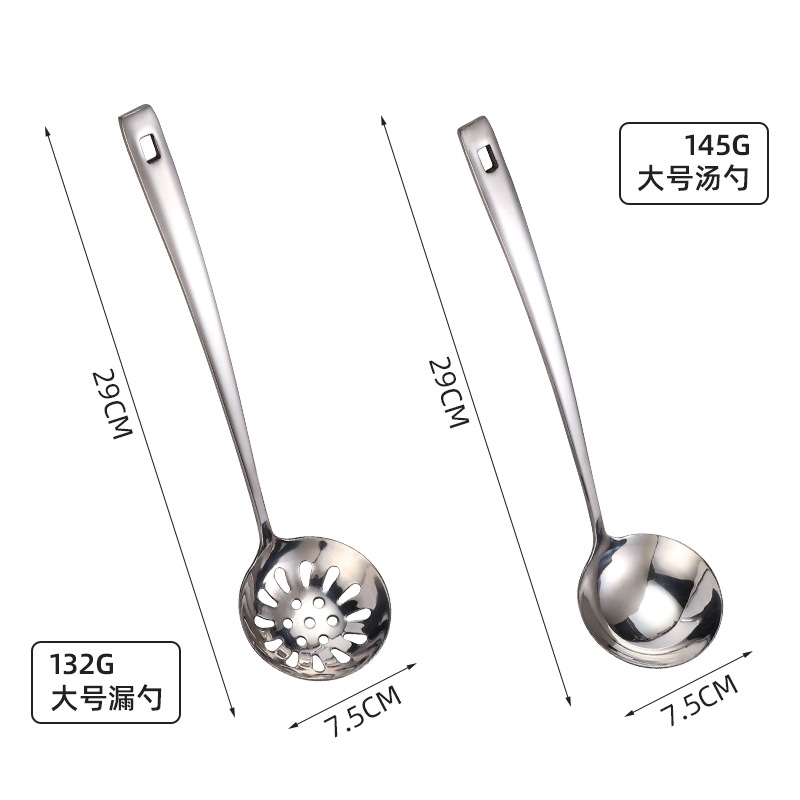 不锈钢汤漏勺方柄加厚挂钩汤勺大号中号勺子小号家庭火锅店专供