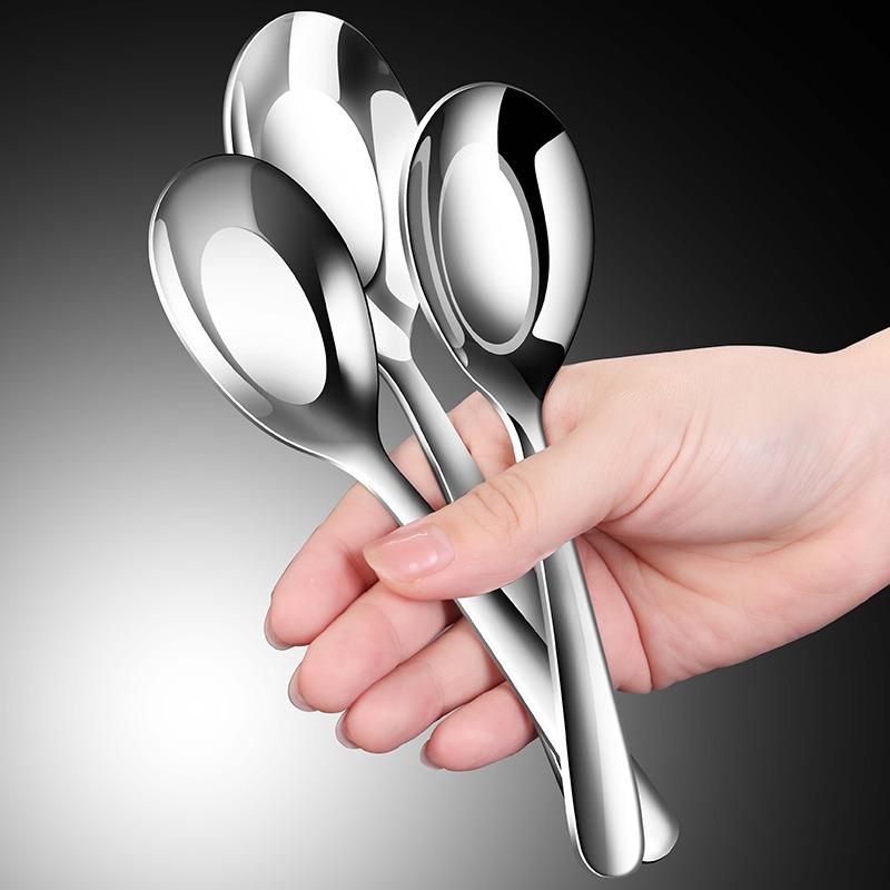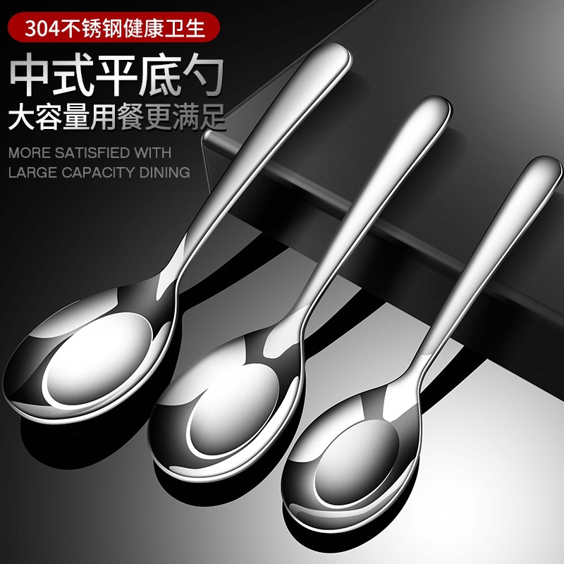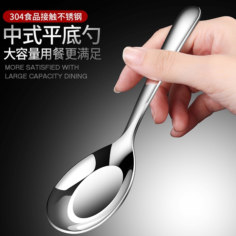 304不锈钢平底勺子家用吃饭调羹喝汤汤匙儿童宝宝餐勺加深小勺子