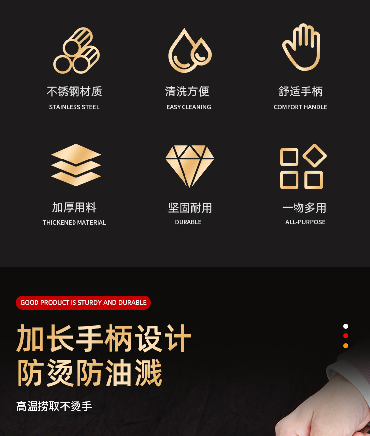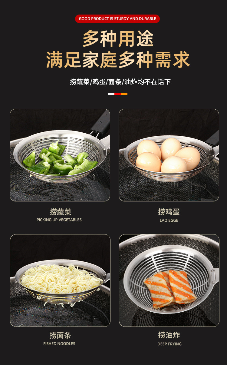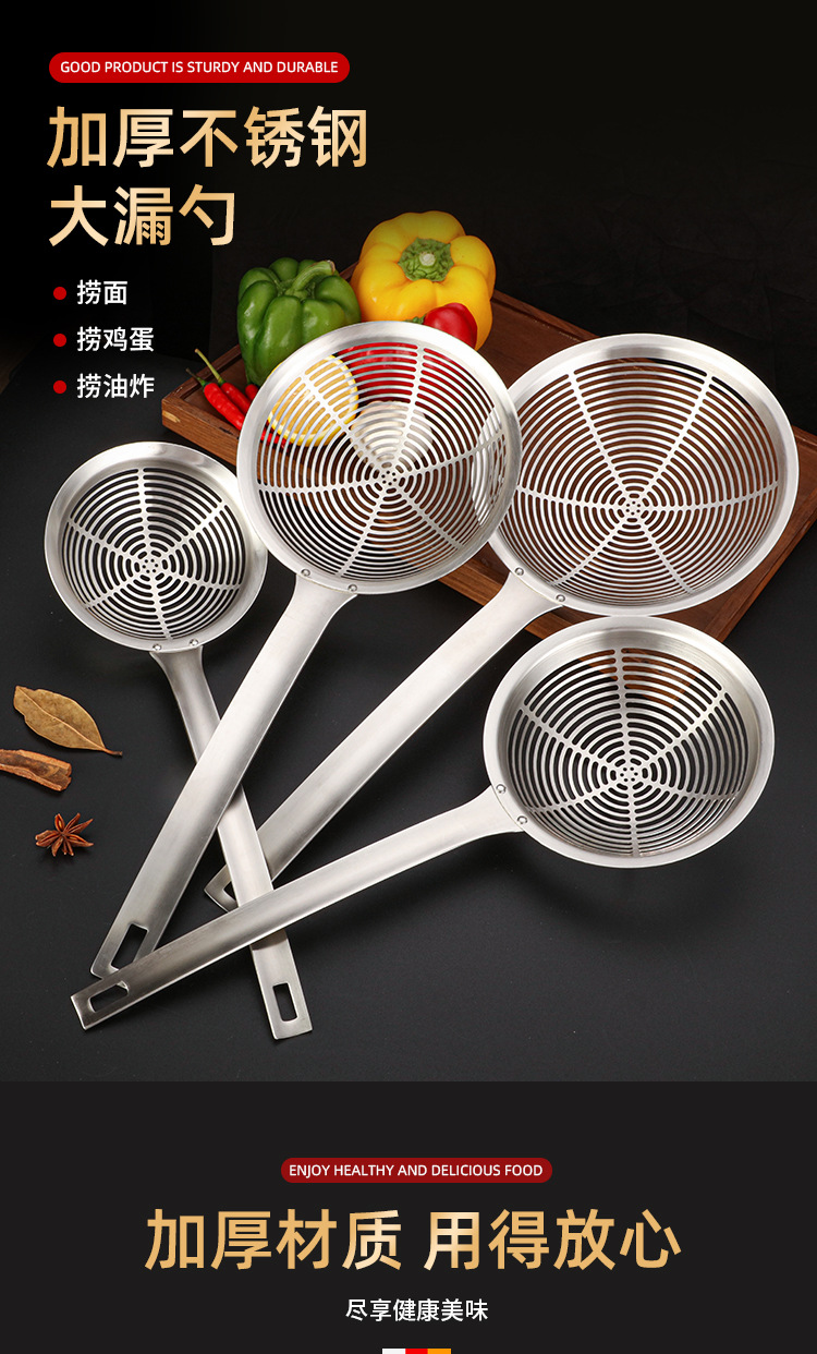 火锅过滤网捞饺子加厚304大漏勺 厨房油炸薯条不锈钢捞面勺