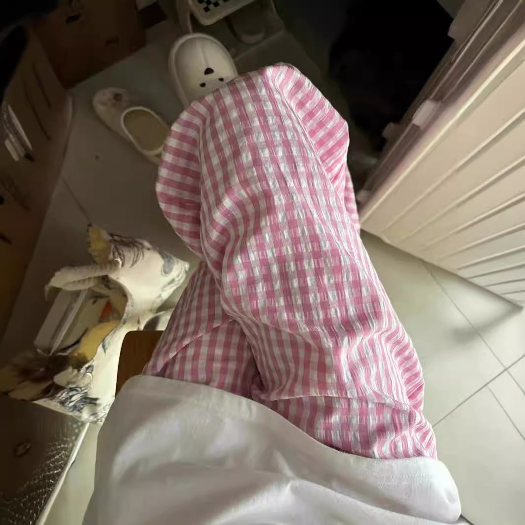 粉色小个子高腰阔腿休闲裤女款夏季设计感宽松修身百搭直筒长裤子