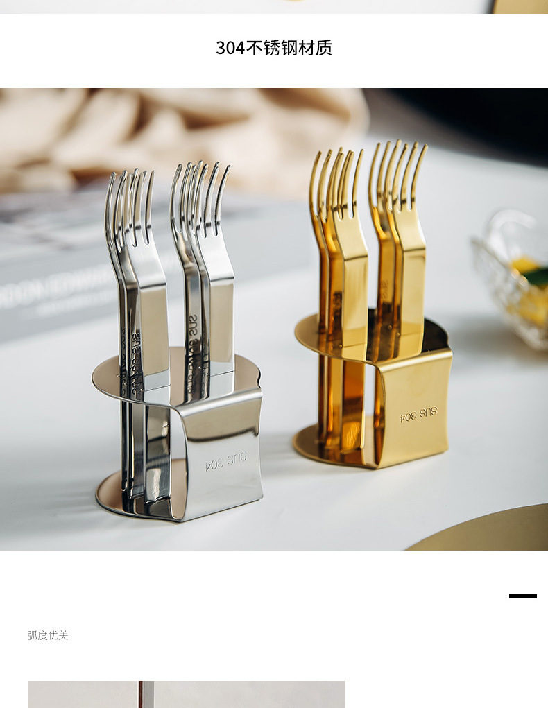 新款方柄水果叉【金色6支+金色架子+彩盒】