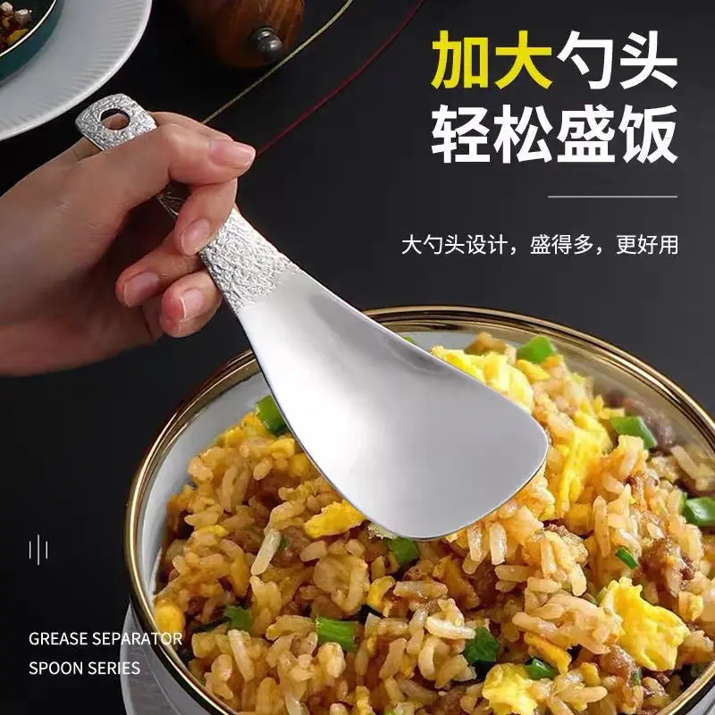304打饭勺子不锈钢高颜值高级感不粘米家用米饭铲日式岩纹分菜勺