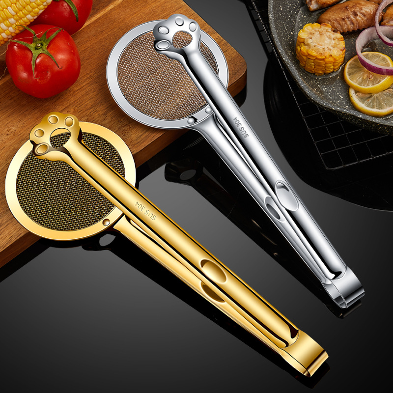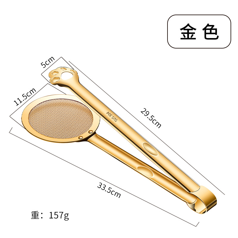 304不锈钢漏勺家用过滤网筛厨房牛排夹油夹煎铲二合一隔油漏网勺