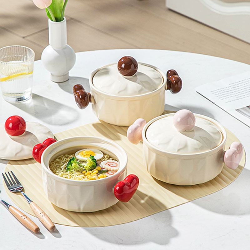可爱加厚陶瓷泡面碗双耳汤碗带盖可爱方便面碗
