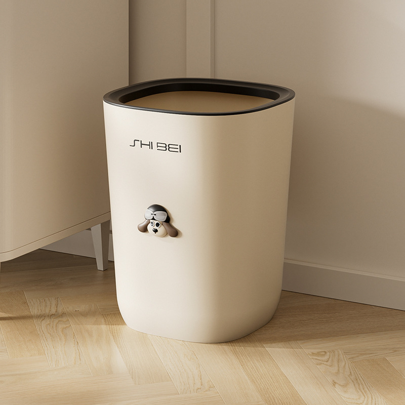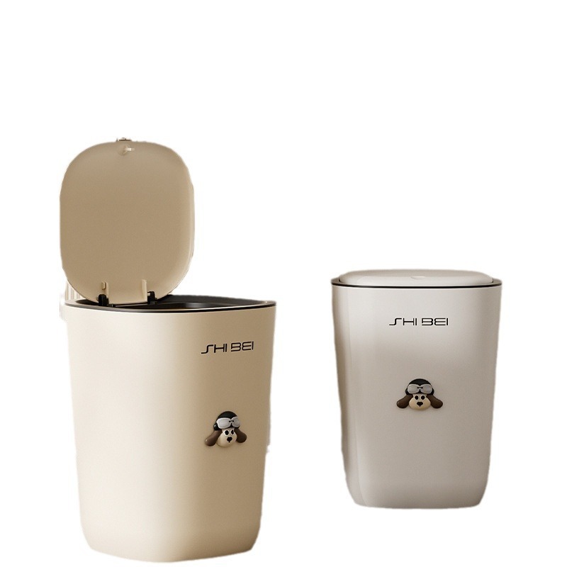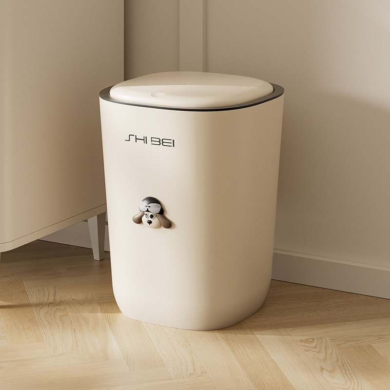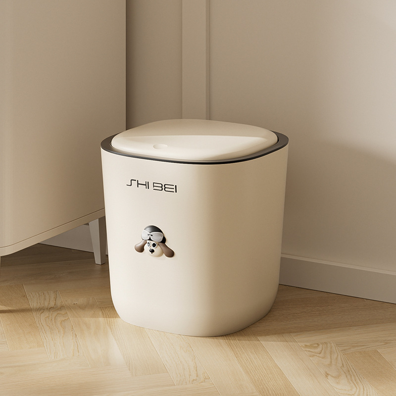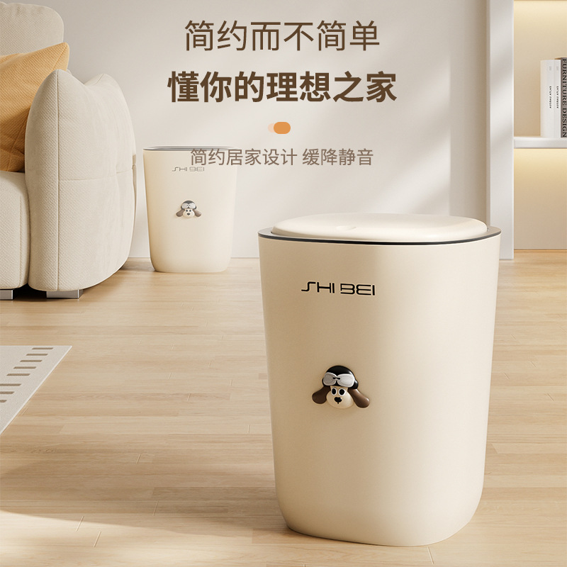 卡通垃圾桶家用客厅卫生间大号纸篓奶油风带盖压圈清洁收纳桶批发