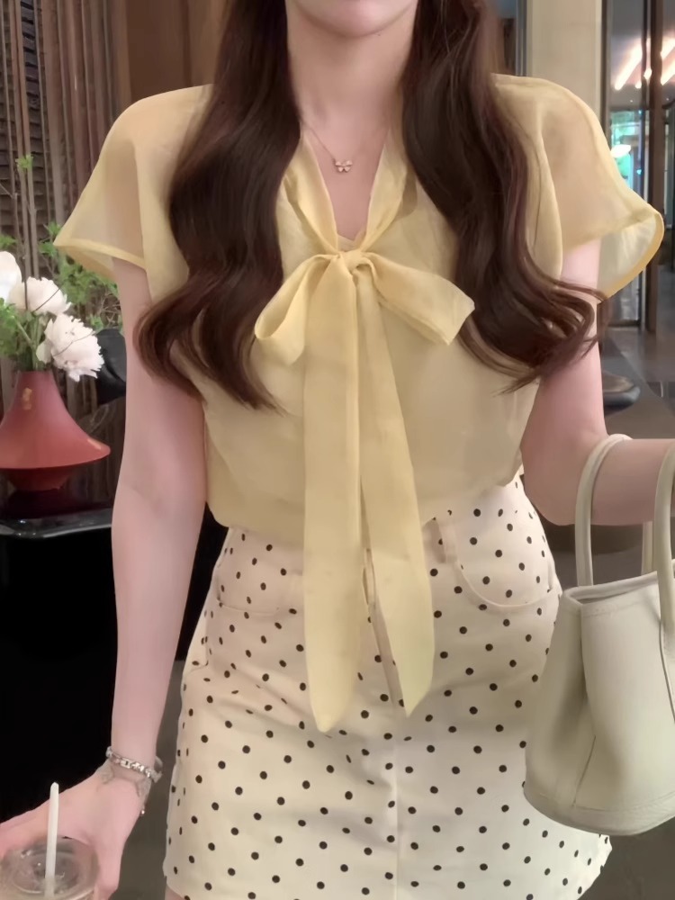 法式蝴蝶结绑带雪纺衬衫女2025夏季新款设计感别致独特小香风上衣