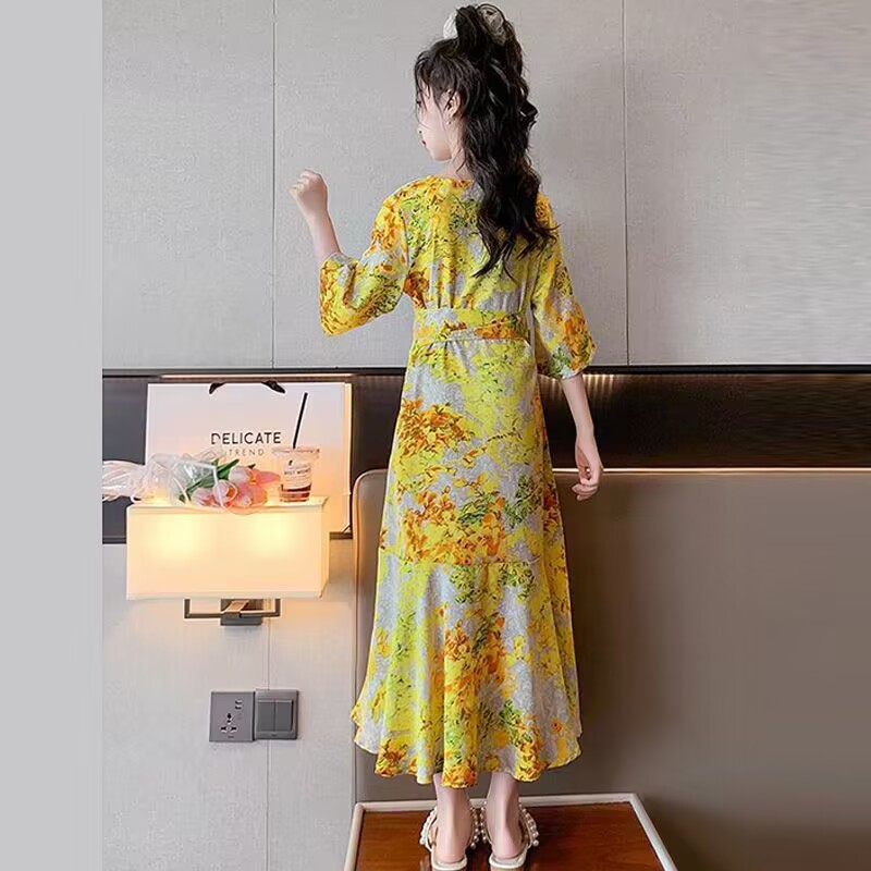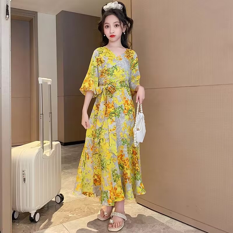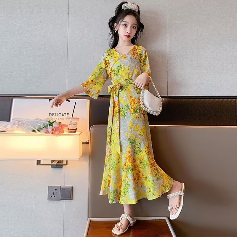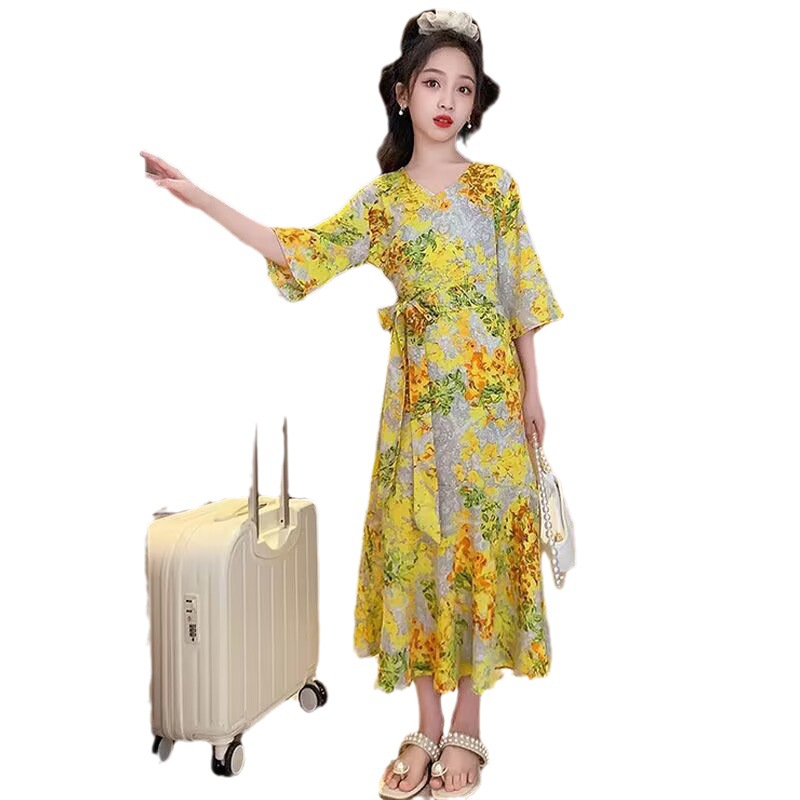 女童碎花连衣裙夏装海边度假沙滩裙洋气波西米亚夏季中大童网红裙